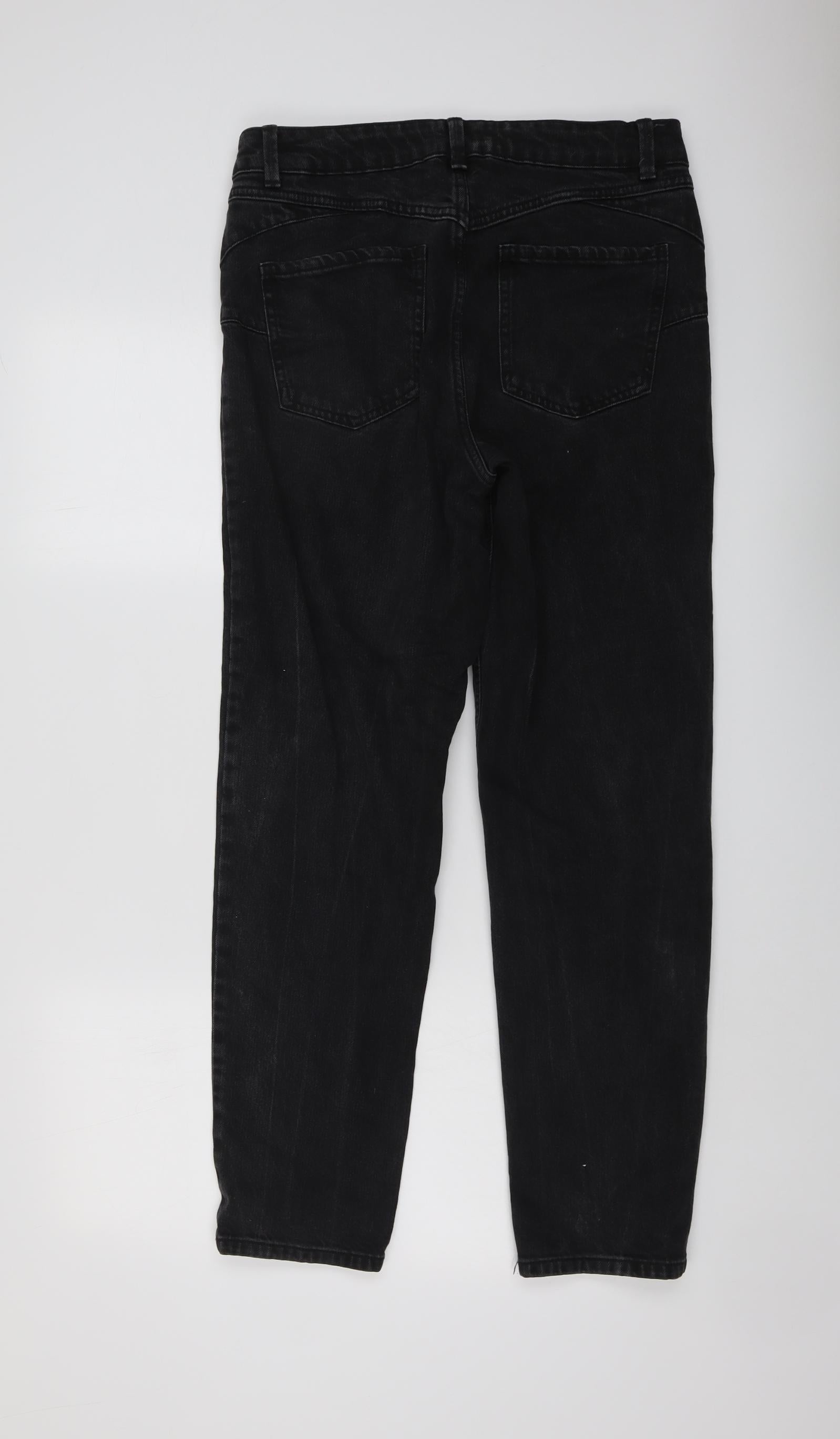 New Look Womens Grey Cotton Straight Jeans Size 12 L28 in Regular Button