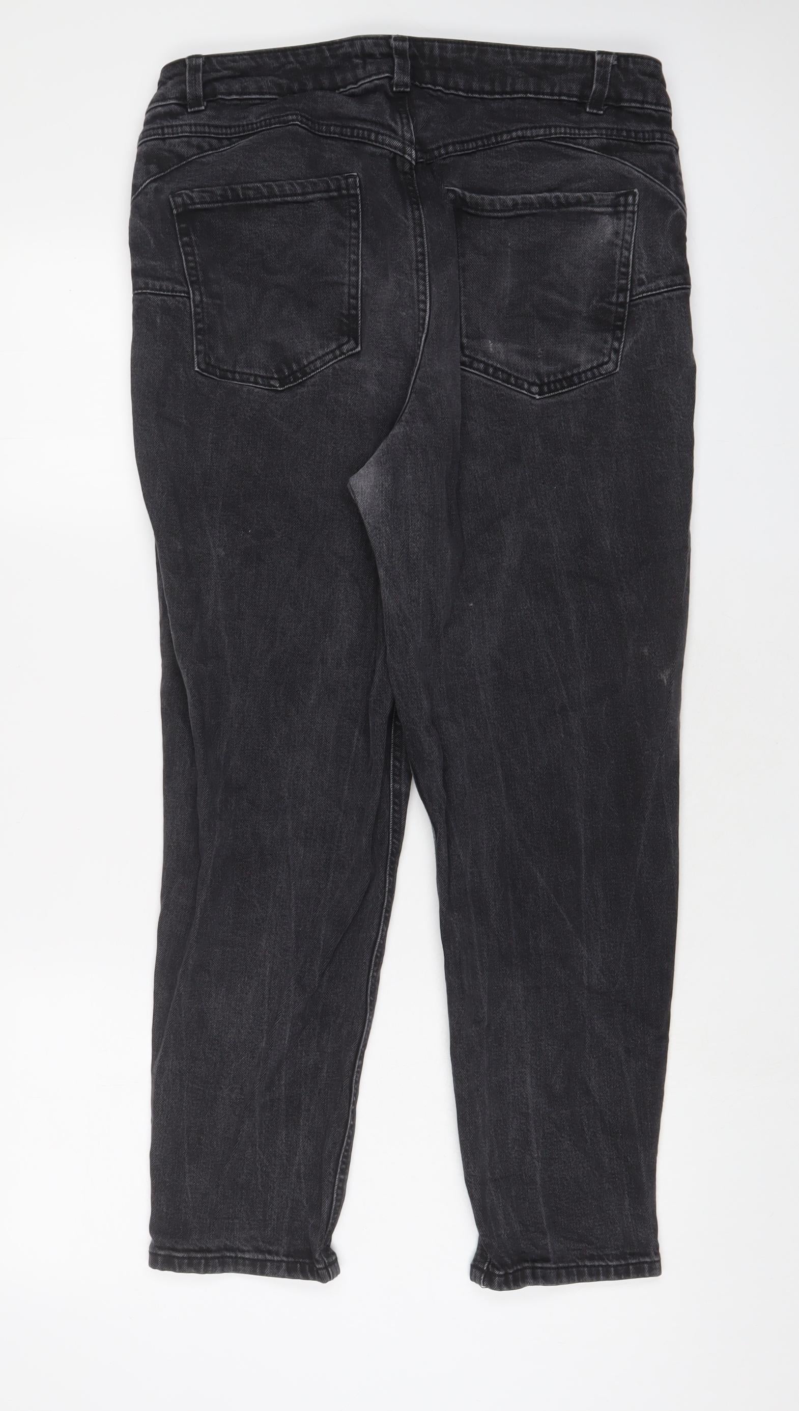 New Look Womens Grey Cotton Straight Jeans Size 16 L27 in Slim Zip