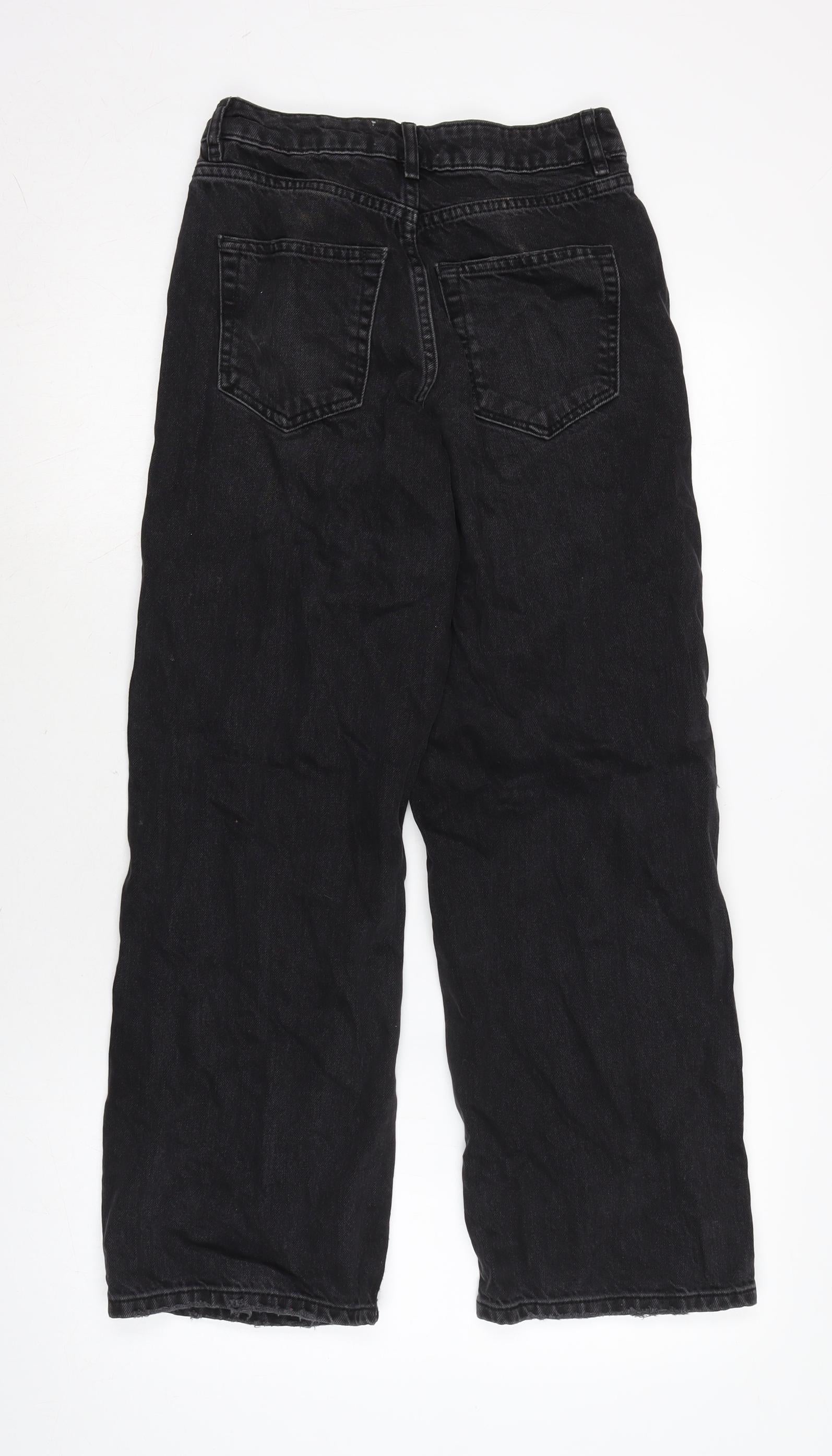 New Look Womens Grey Cotton Wide-Leg Jeans Size 6 L25.5 in Regular Zip