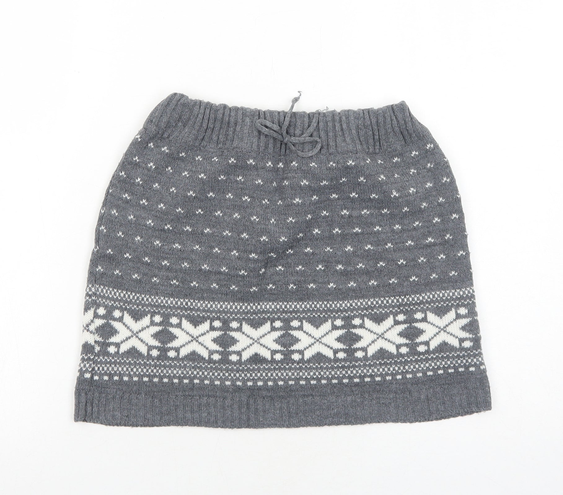 New Look Womens Grey Geometric Acrylic Mini Skirt Size XS Drawstring
