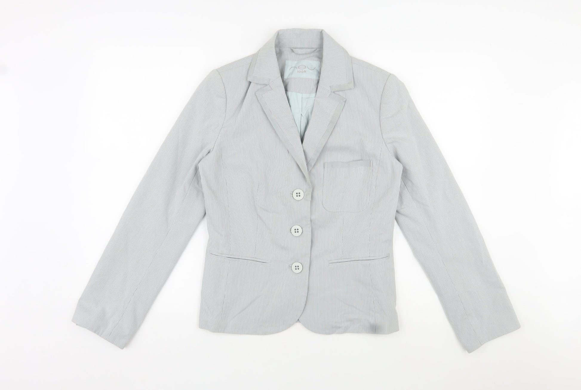 New Look Womens Grey Pinstripe Cotton Jacket Blazer Size 12