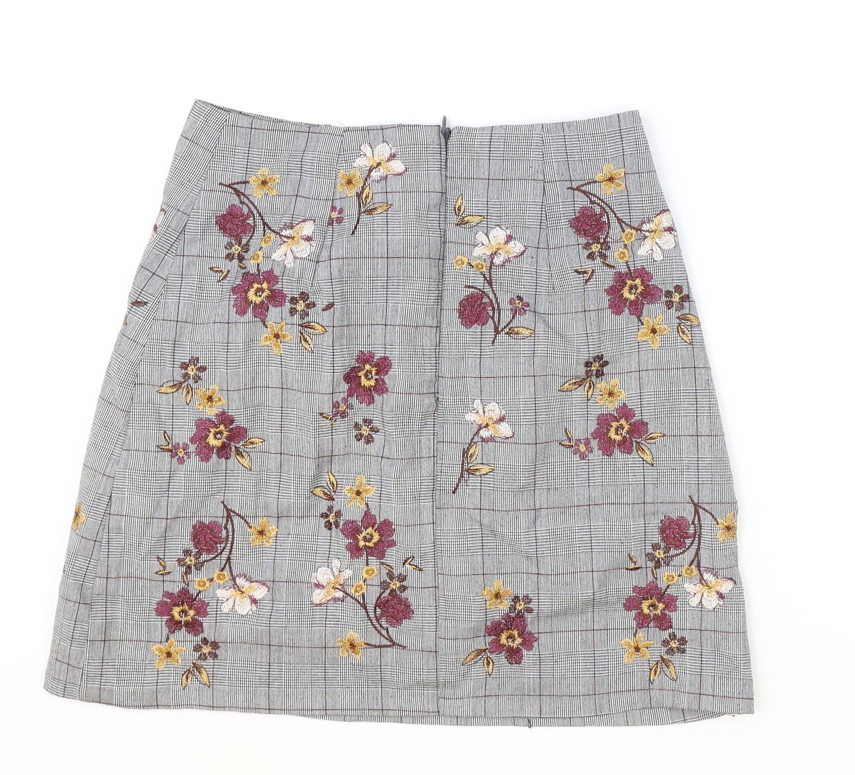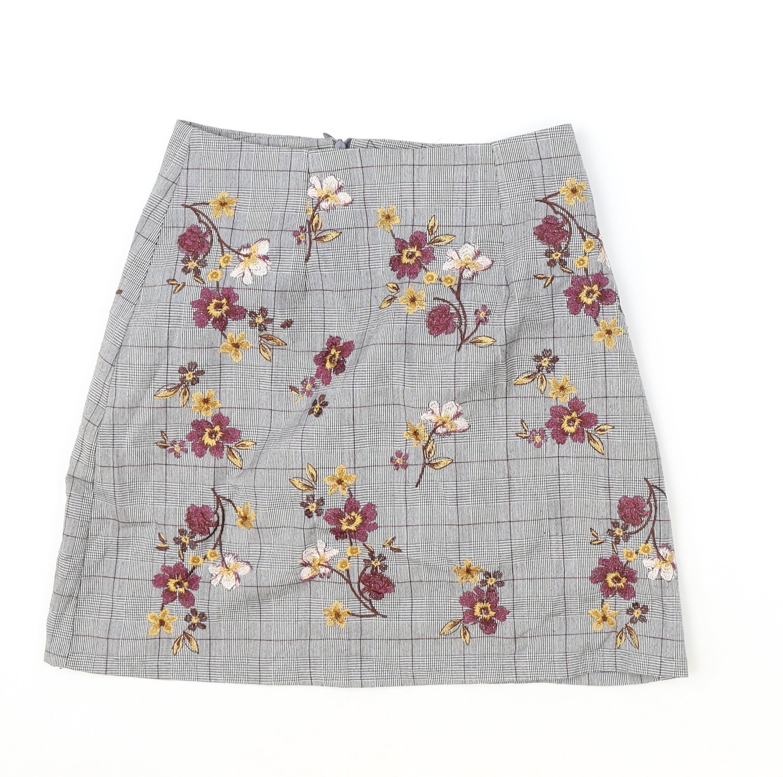 New Look Womens Grey Plaid Polyester Straight & Pencil Skirt Size 6 Zip - Flower Pattern