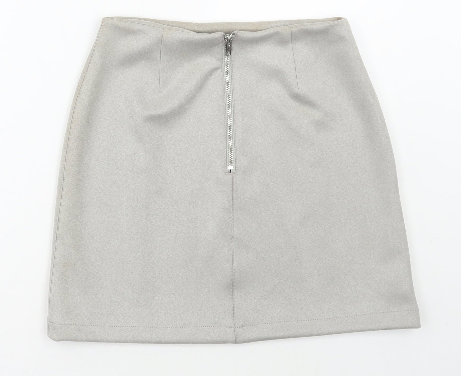 New Look Womens Grey Polyester Mini Skirt Size 8 Zip