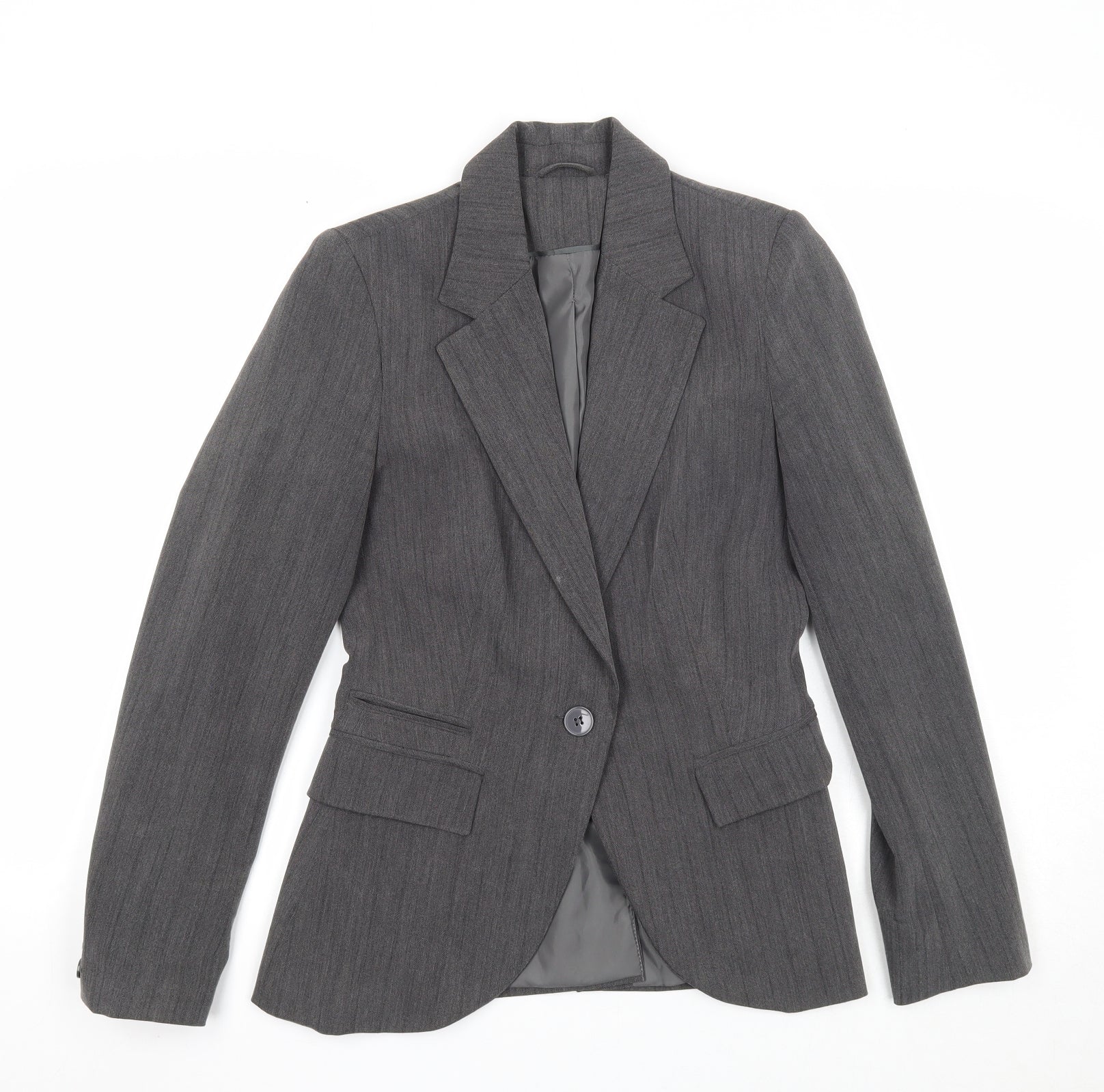 New Look Womens Grey Striped Polyester Jacket Suit Jacket Size 10