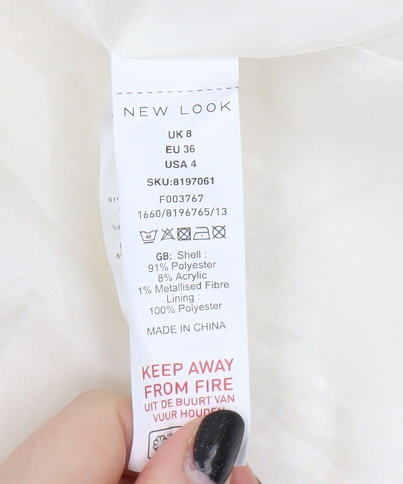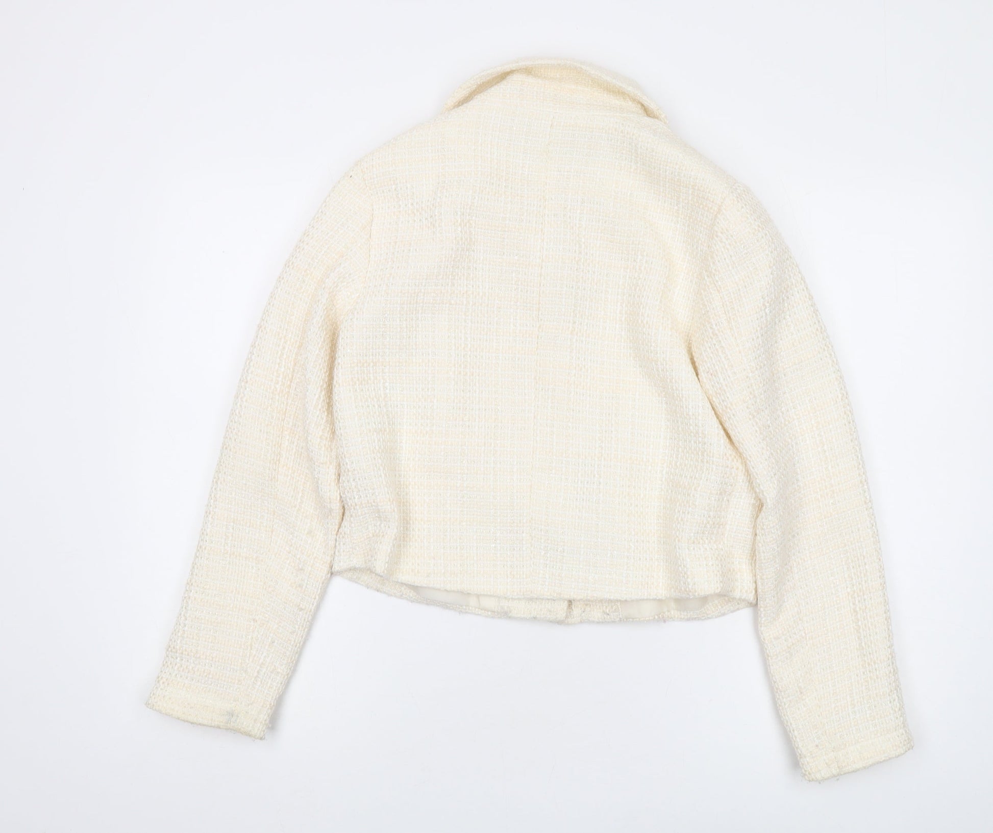 New Look Women's Ivory Bouclé Cropped Blazer UK 8