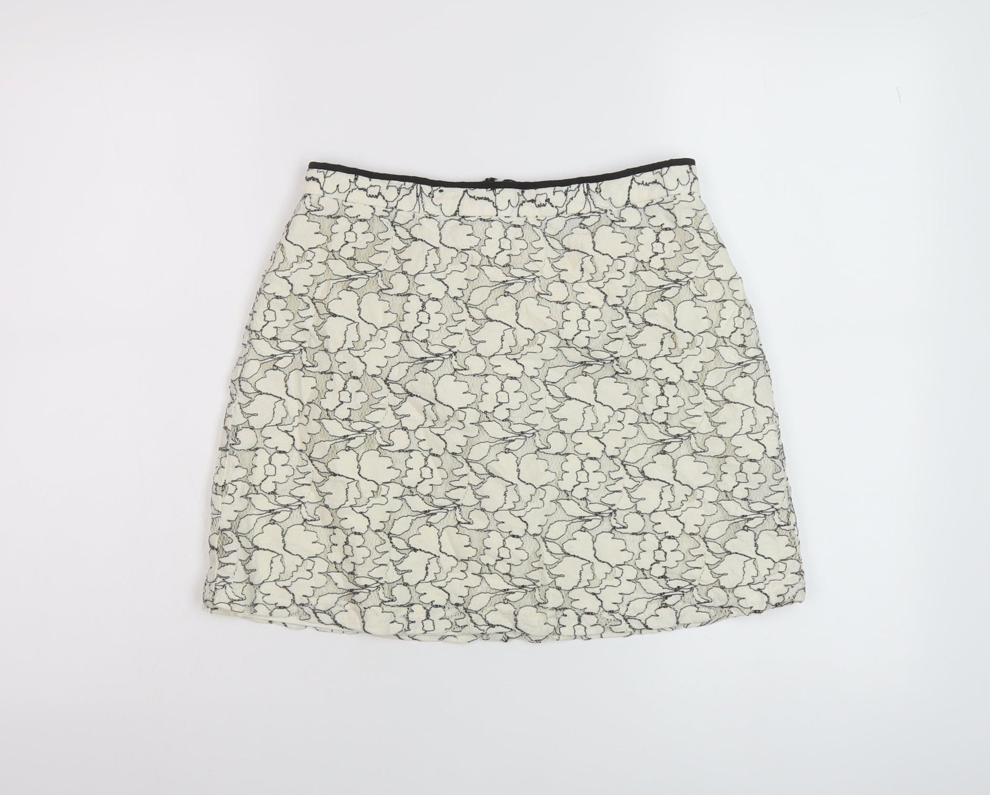 New Look Womens Ivory Cotton Mini Skirt Size 8 Zip