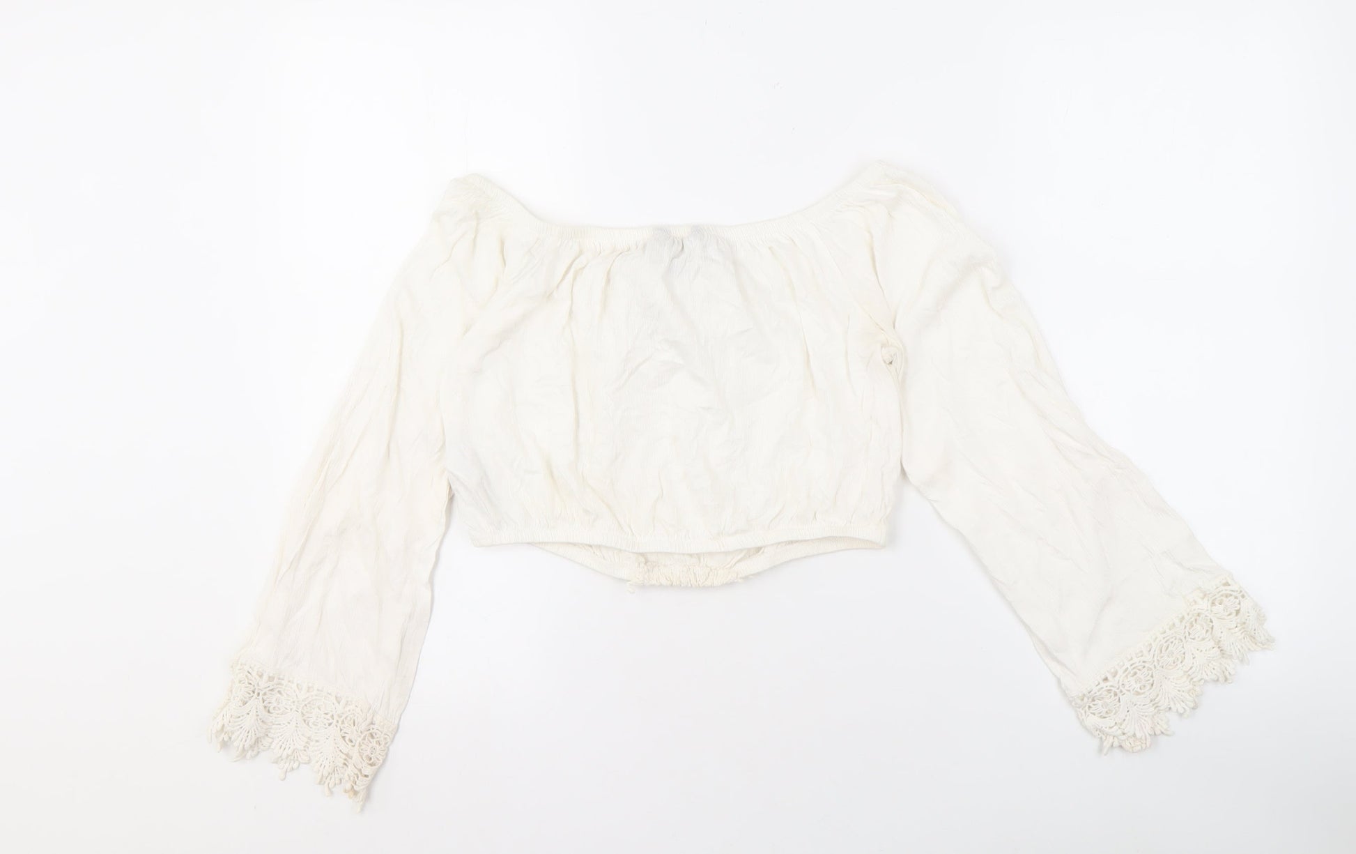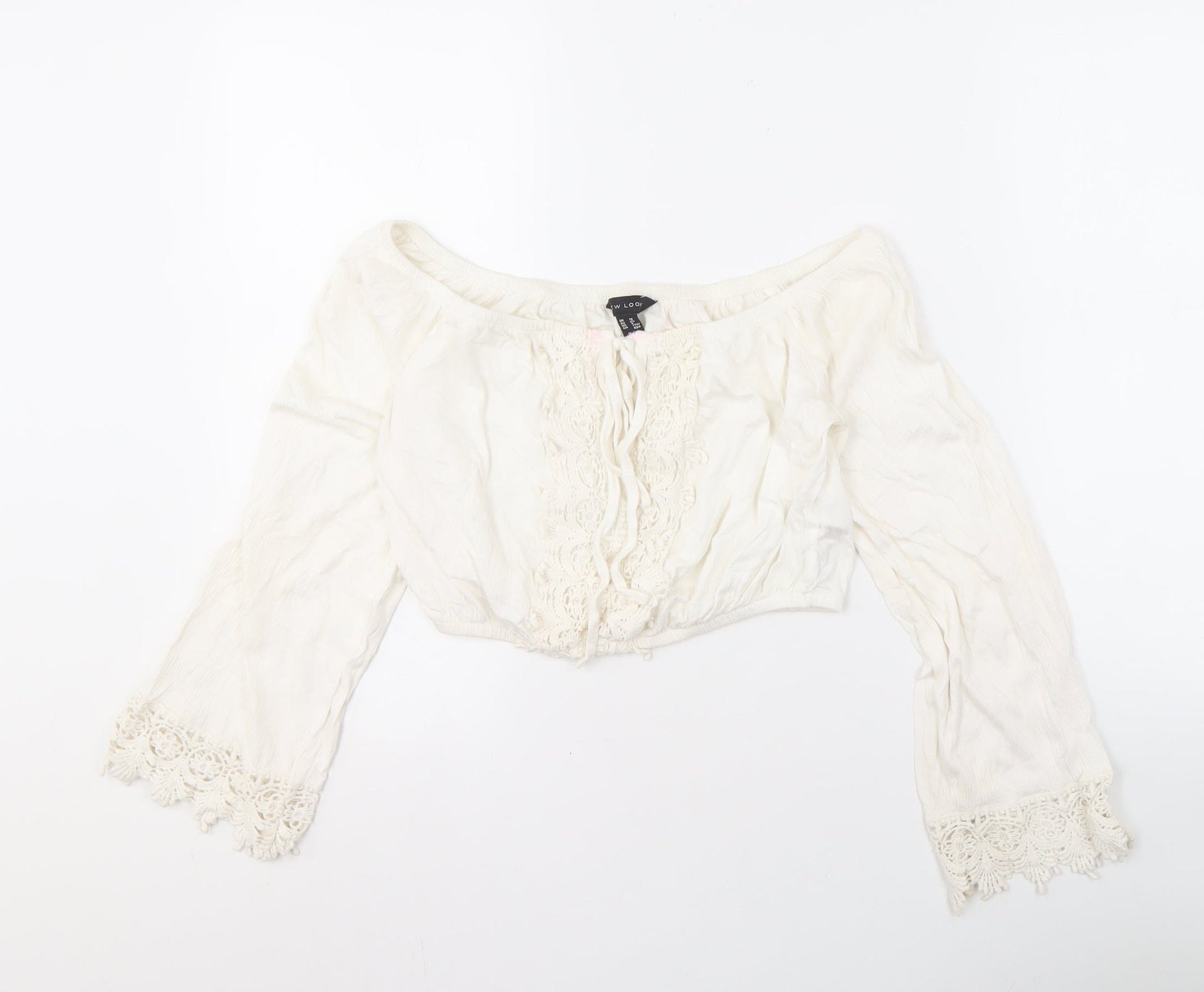 New Look Women's Ivory Cropped Off-Shoulder Blouse Size 12