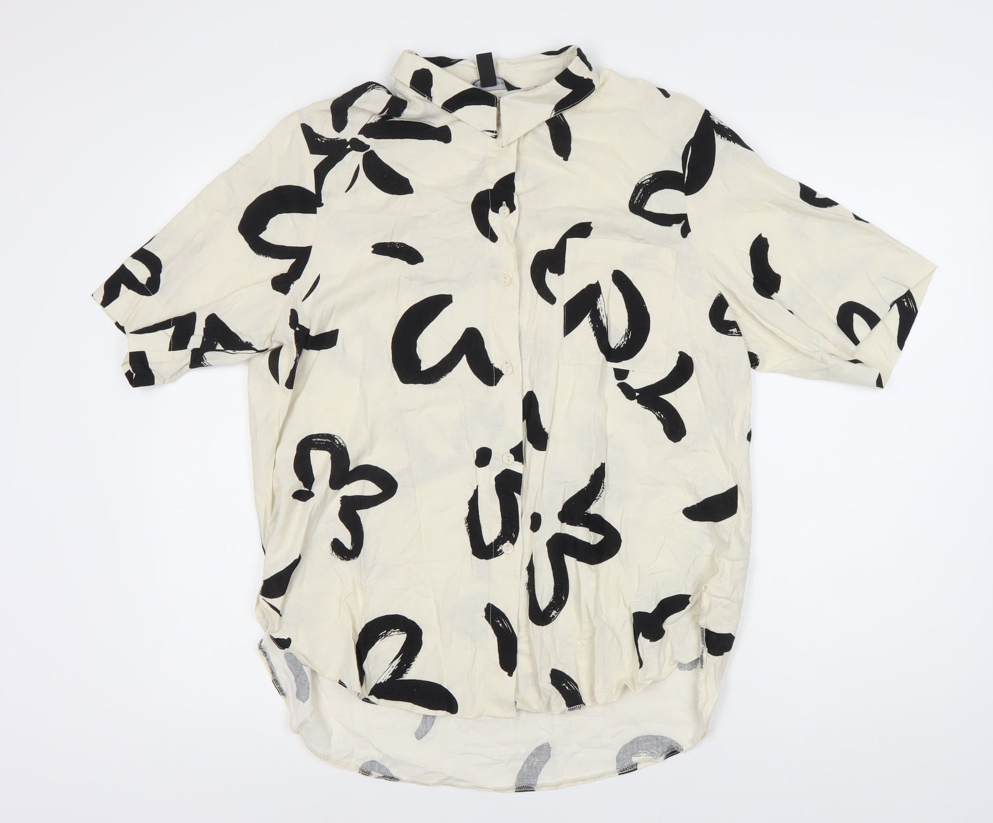 New Look Women's Ivory Floral Button-Up Shirt, Size 12