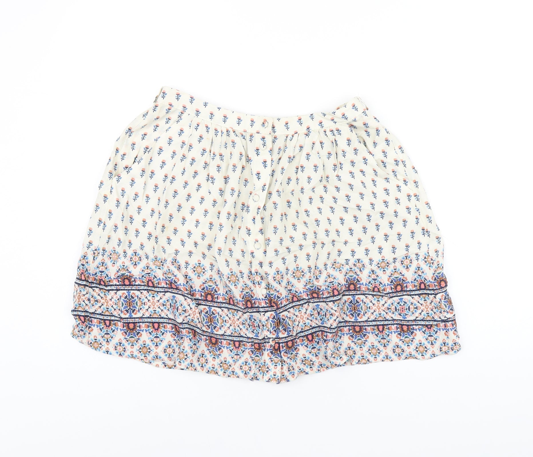 New Look Womens Ivory Floral Viscose Mini Skirt Size 6 Button