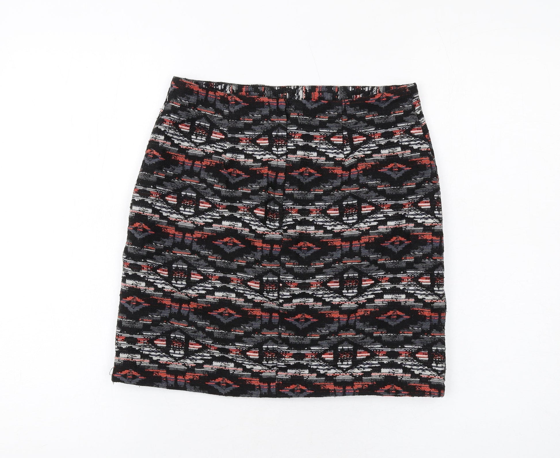 New Look Womens Multicoloured Geometric Cotton A-Line Skirt Size 6 Zip