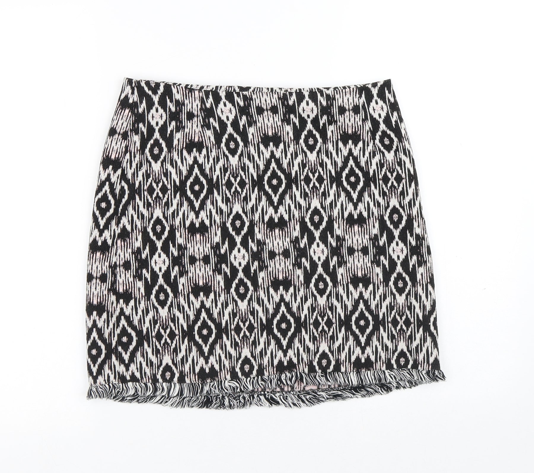 New Look Womens Multicoloured Geometric Polyester A-Line Skirt Size 8 Zip