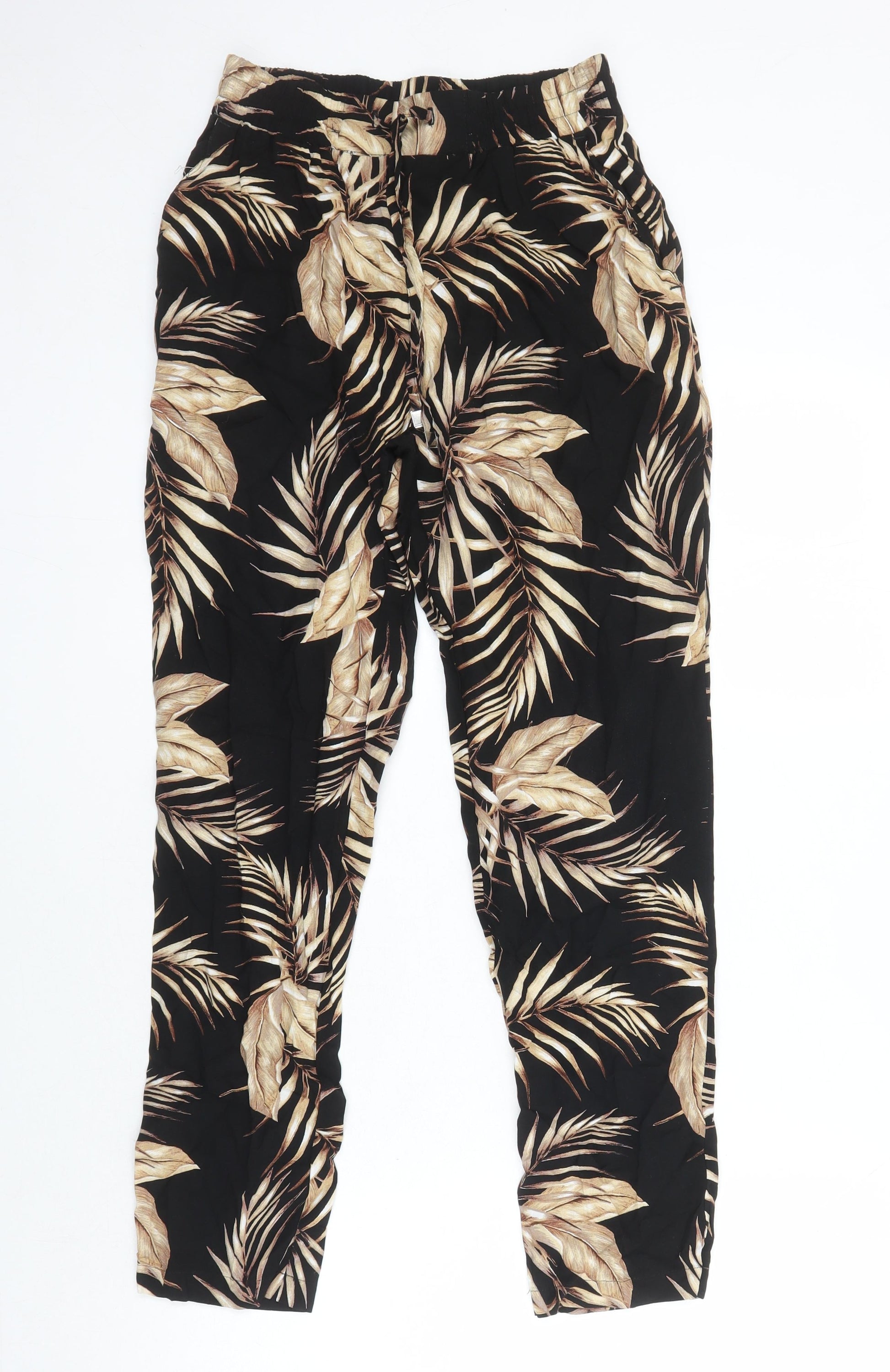 New Look Womens Multicoloured Geometric Viscose Carrot Trousers Size 6 L26 in Regular Tie - Elasticated Waist