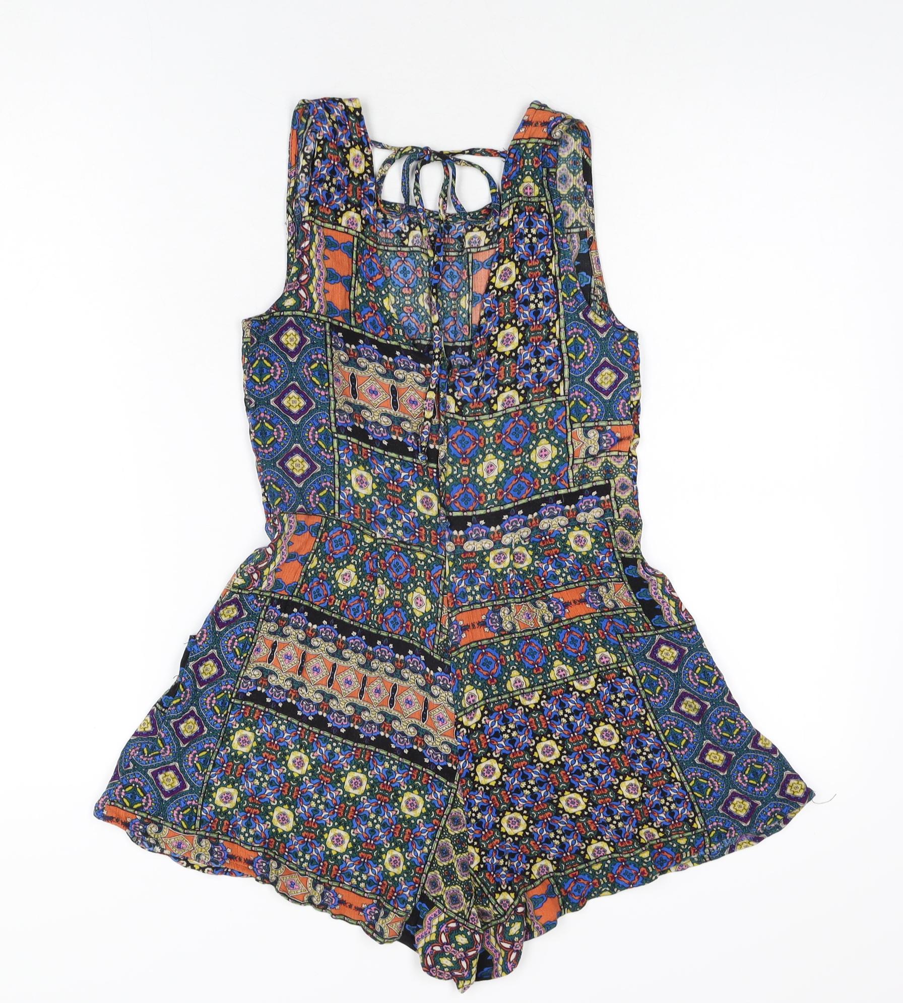 New Look Womens Multicoloured Geometric Viscose Playsuit One-Piece Size 8 Zip