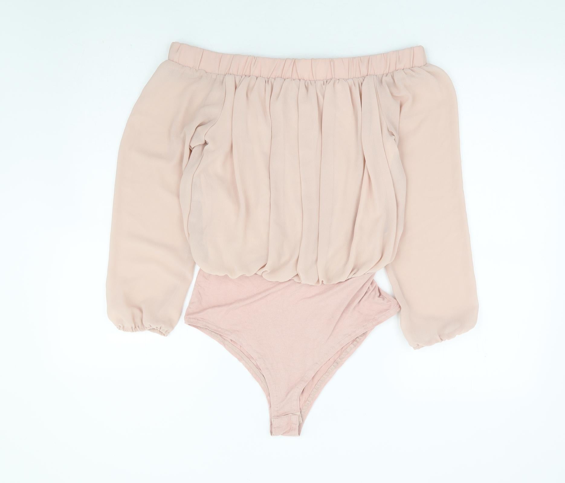 New Look Womens Pink Polyester Bodysuit One-Piece Size 10 Snap