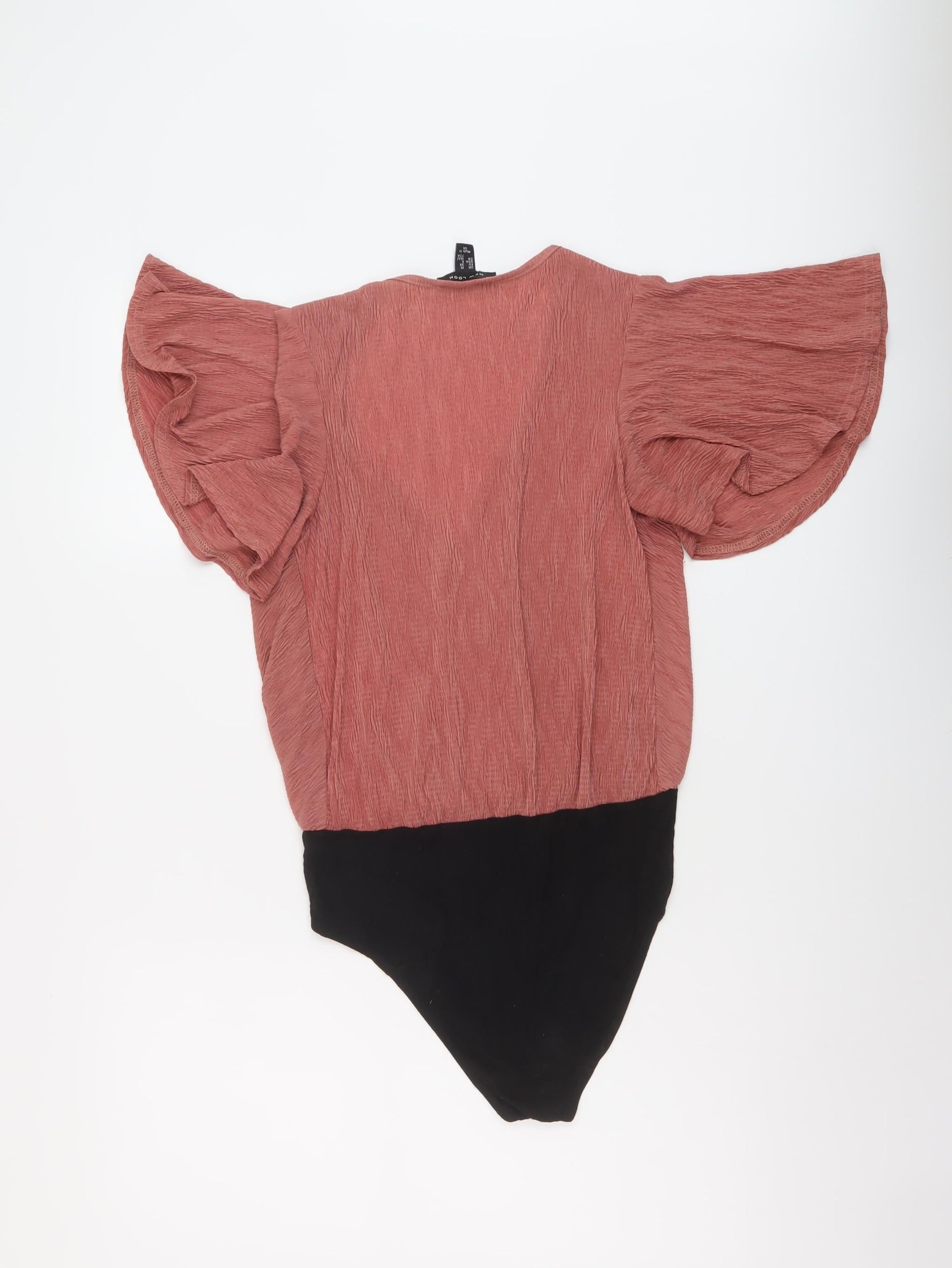 New Look Womens Pink Polyester Bodysuit One-Piece Size 10 Snap