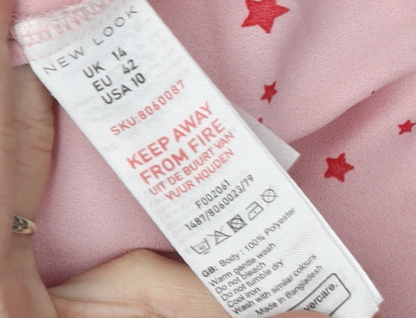 New Look Women's Pink Star Print Button-Up Blouse, Size 14