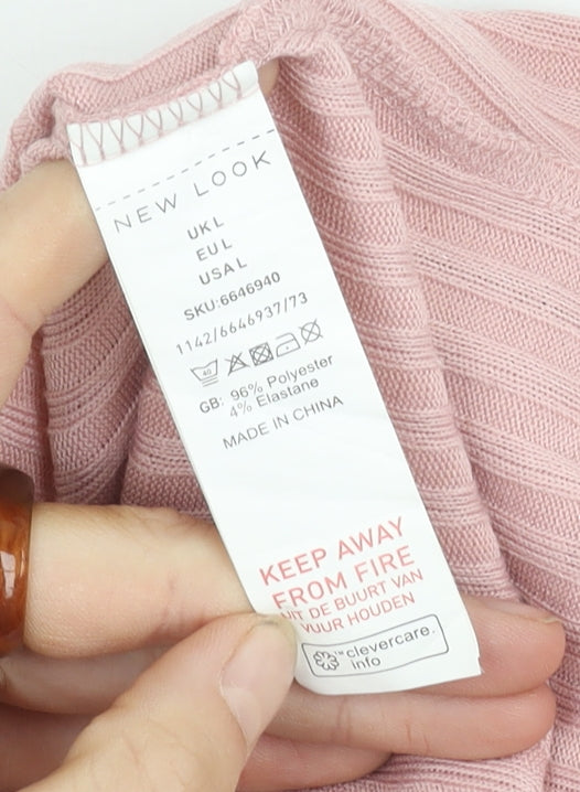 New Look Women's Pink V-Neck Top Size L