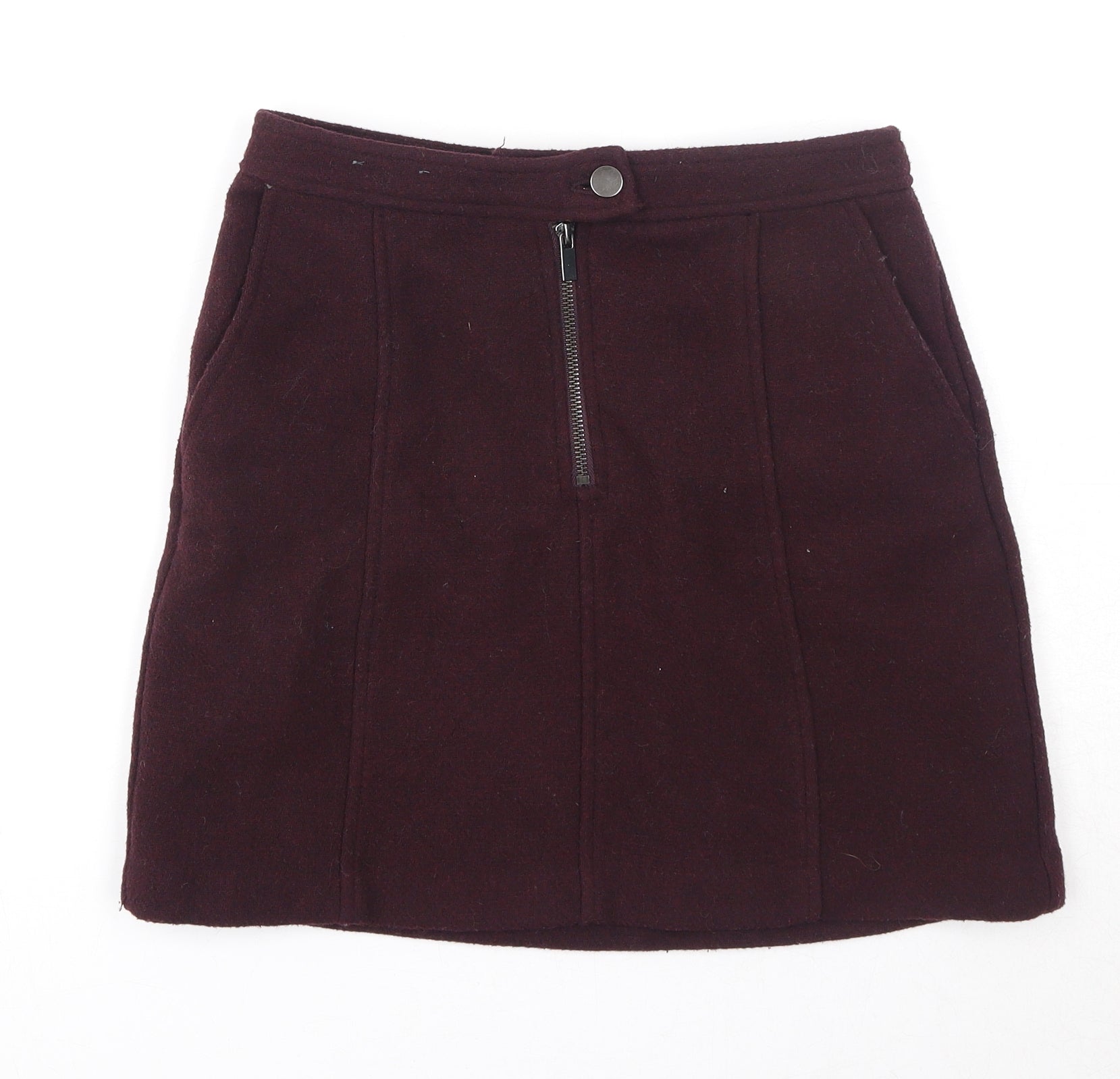 New Look Womens Purple Polyester A-Line Skirt Size 8 Zip