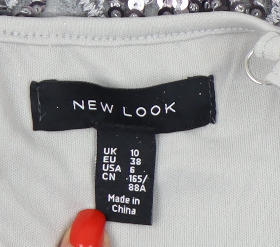 New Look Women's Silver Sequin Camisole Top UK 10