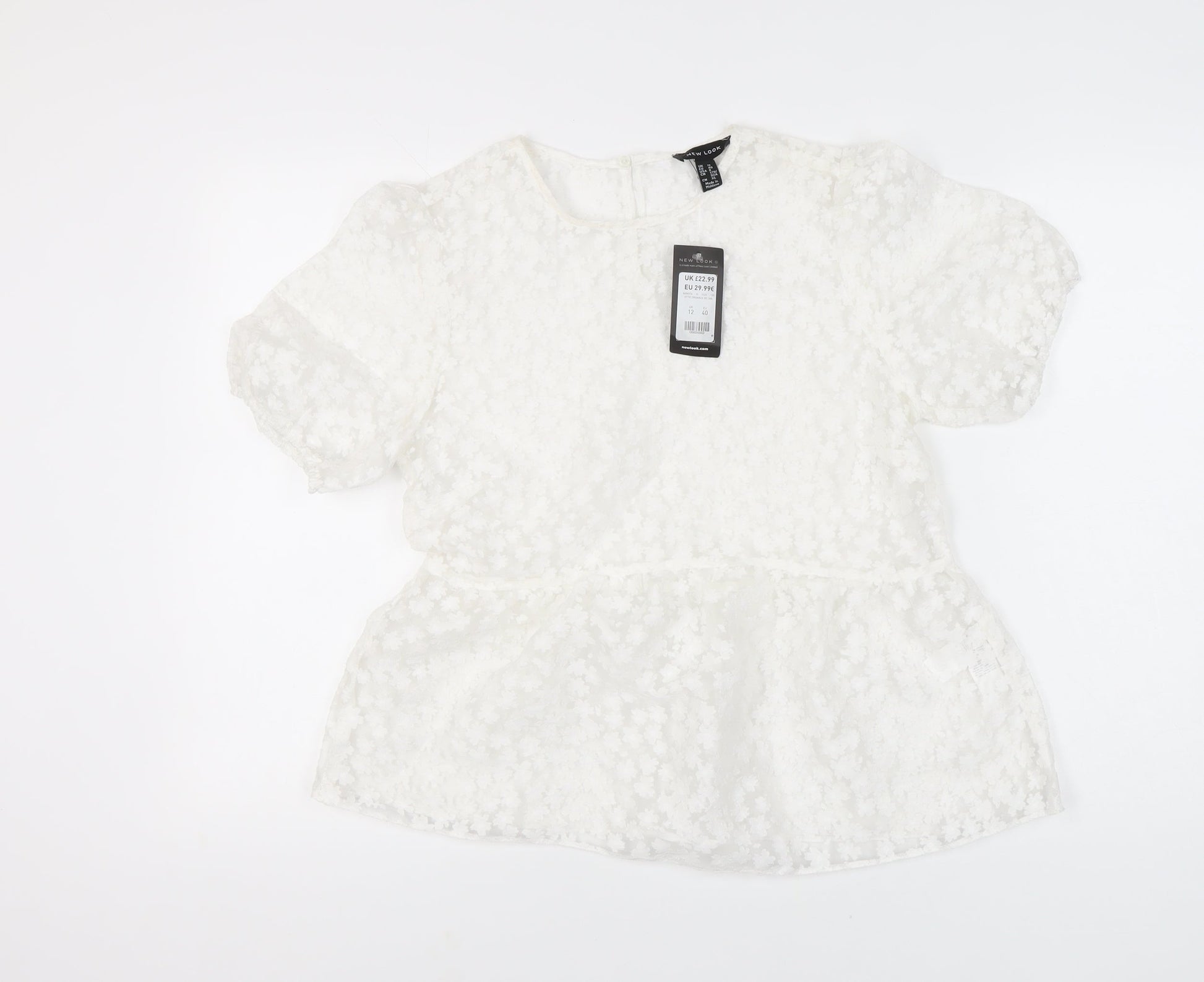 - Keywords: New Look women's blouse white size 12 elegant versatile viscose polyester