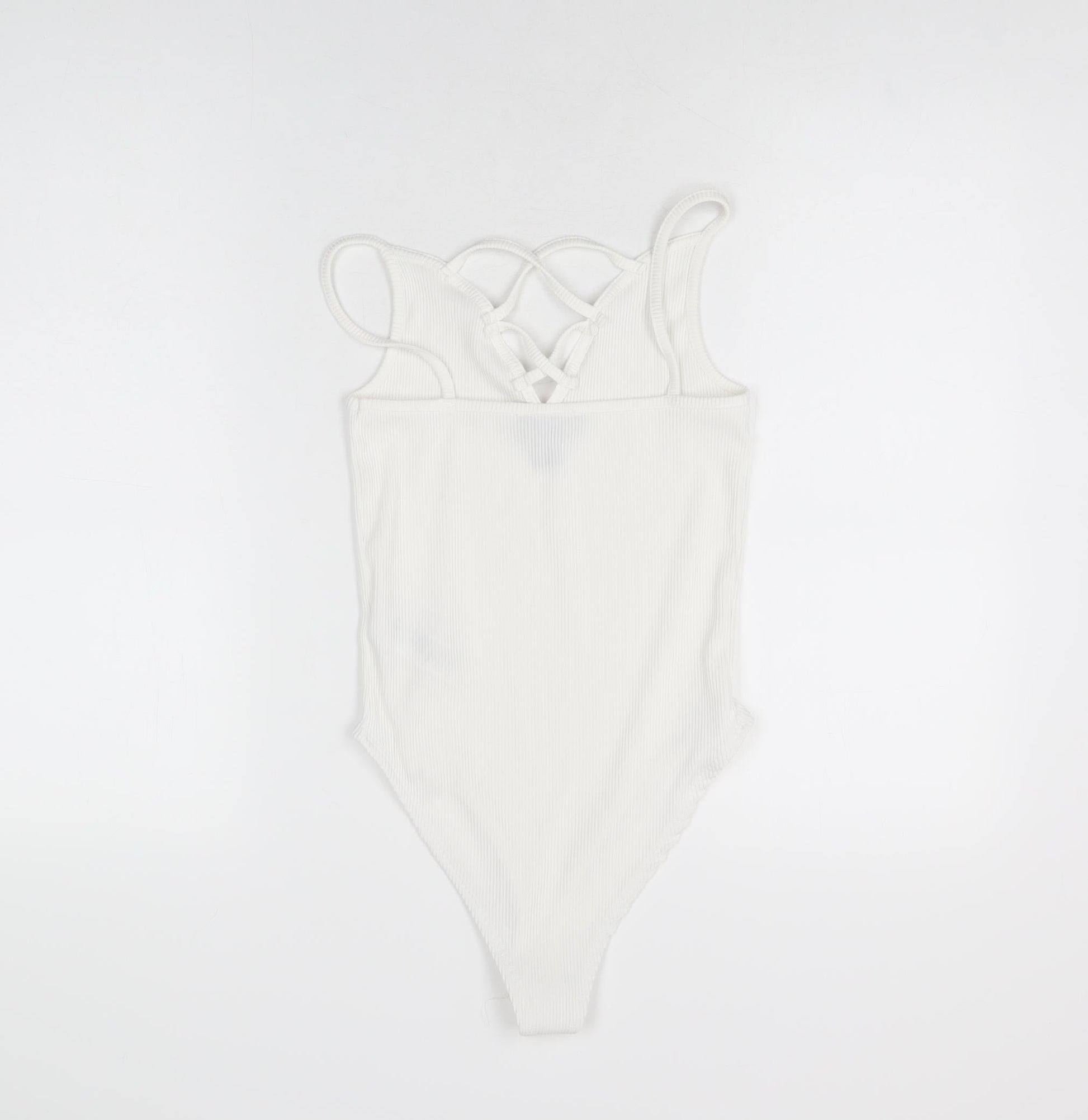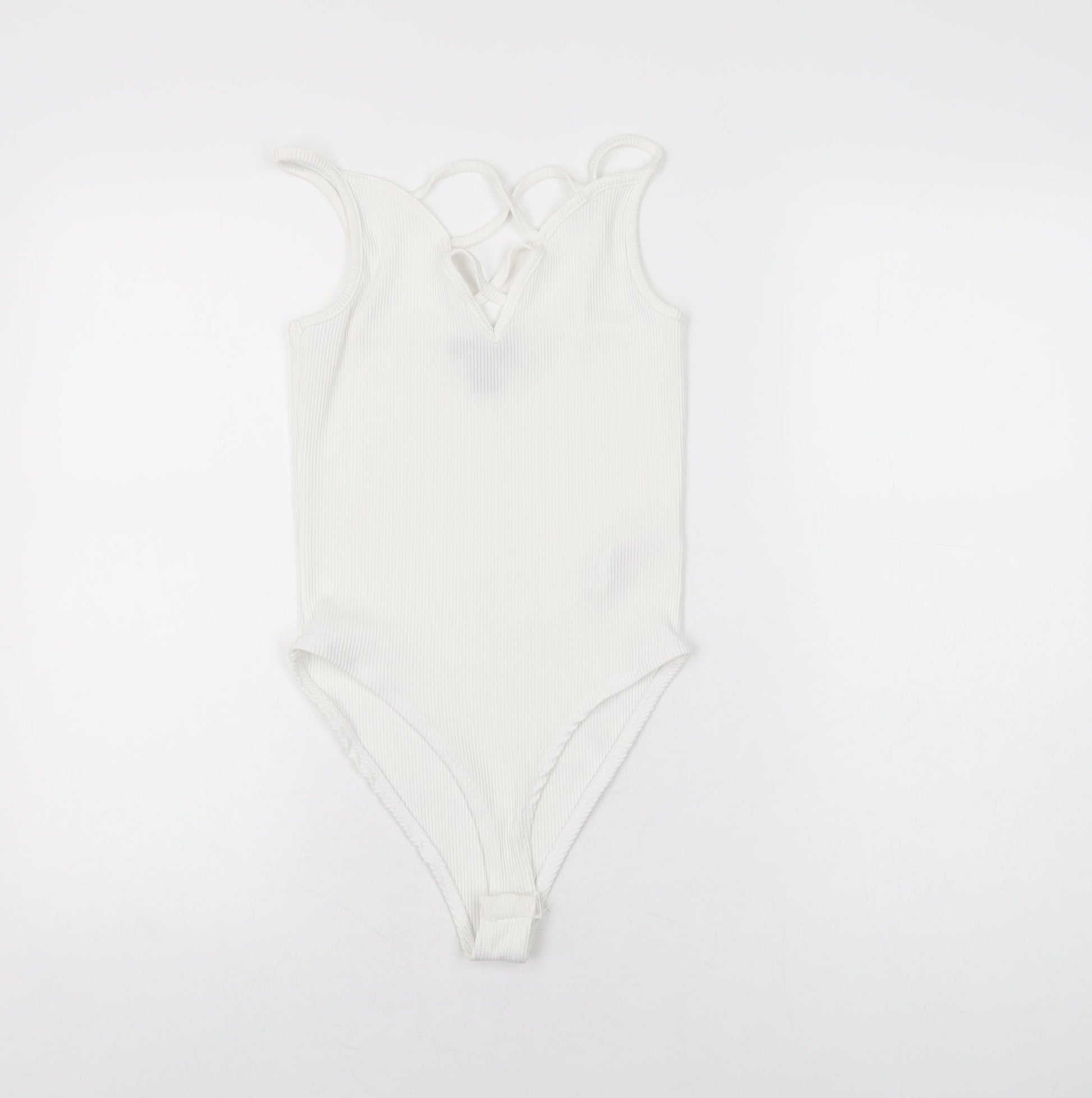 New Look Womens White Polyester Bodysuit One-Piece Size 8 Snap