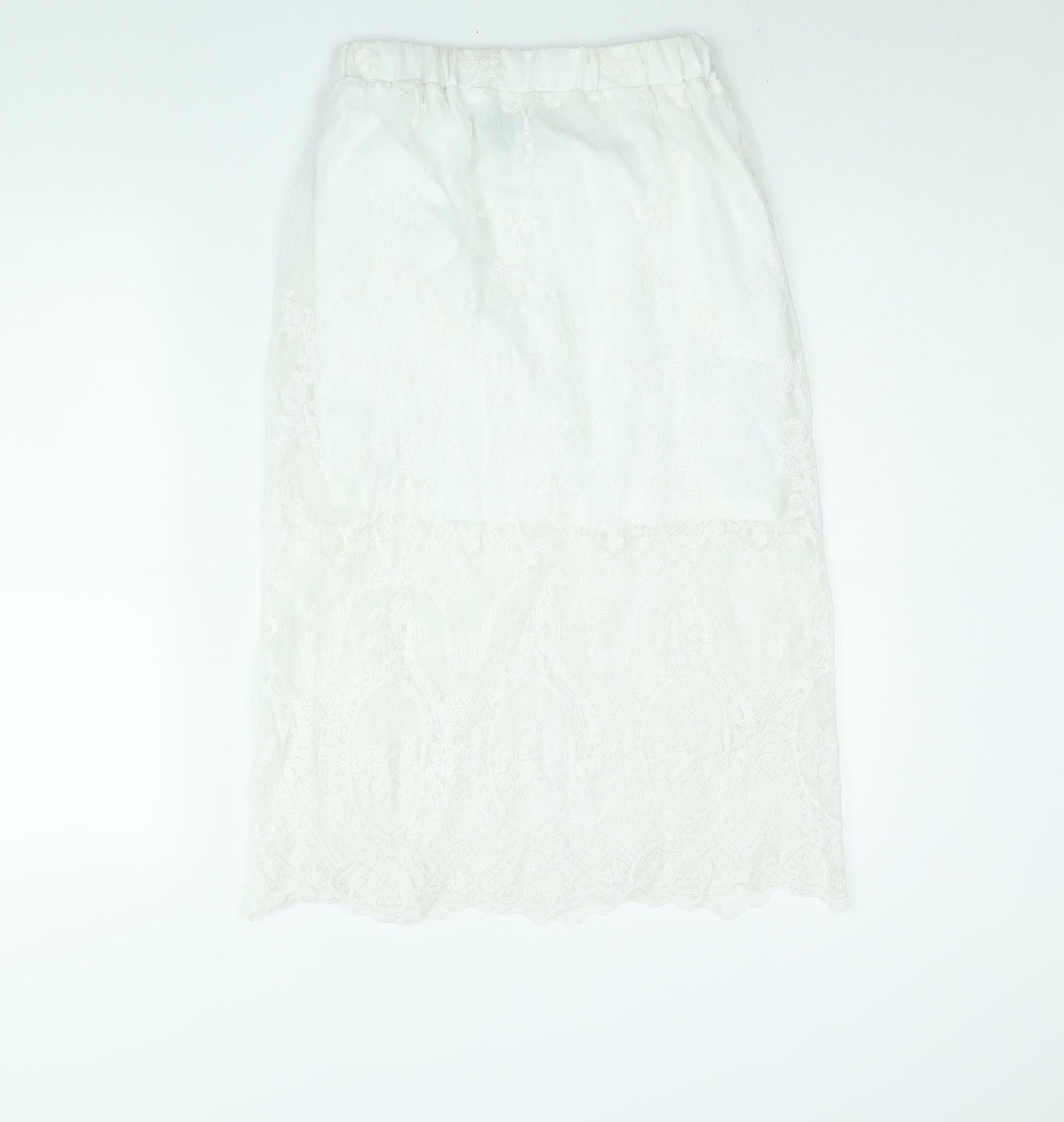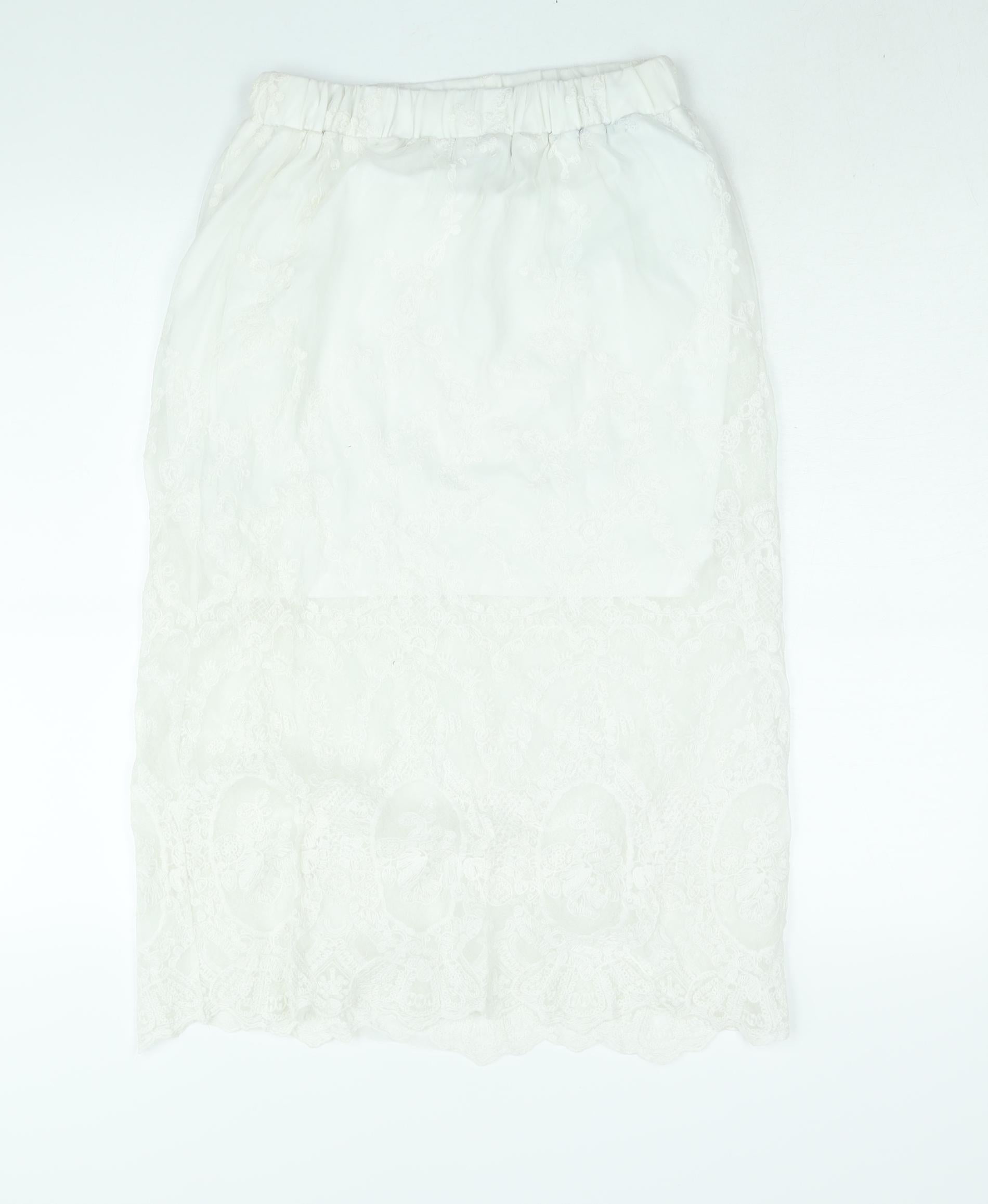 New Look Womens White Polyester Straight & Pencil Skirt Size 10 - Embroidered