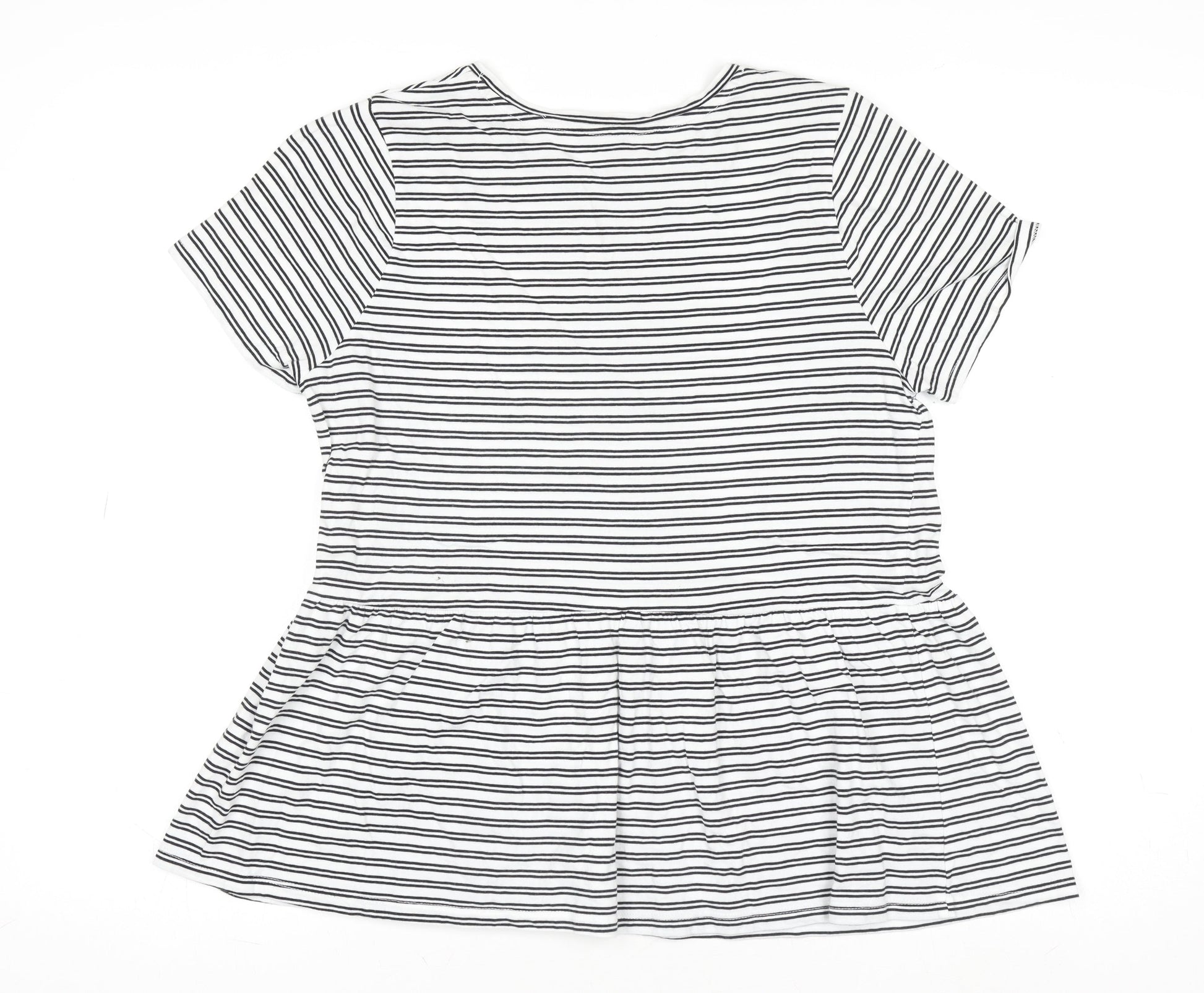 New Look Womens White Striped Cotton Jersey Peplum T-Shirt Size 10