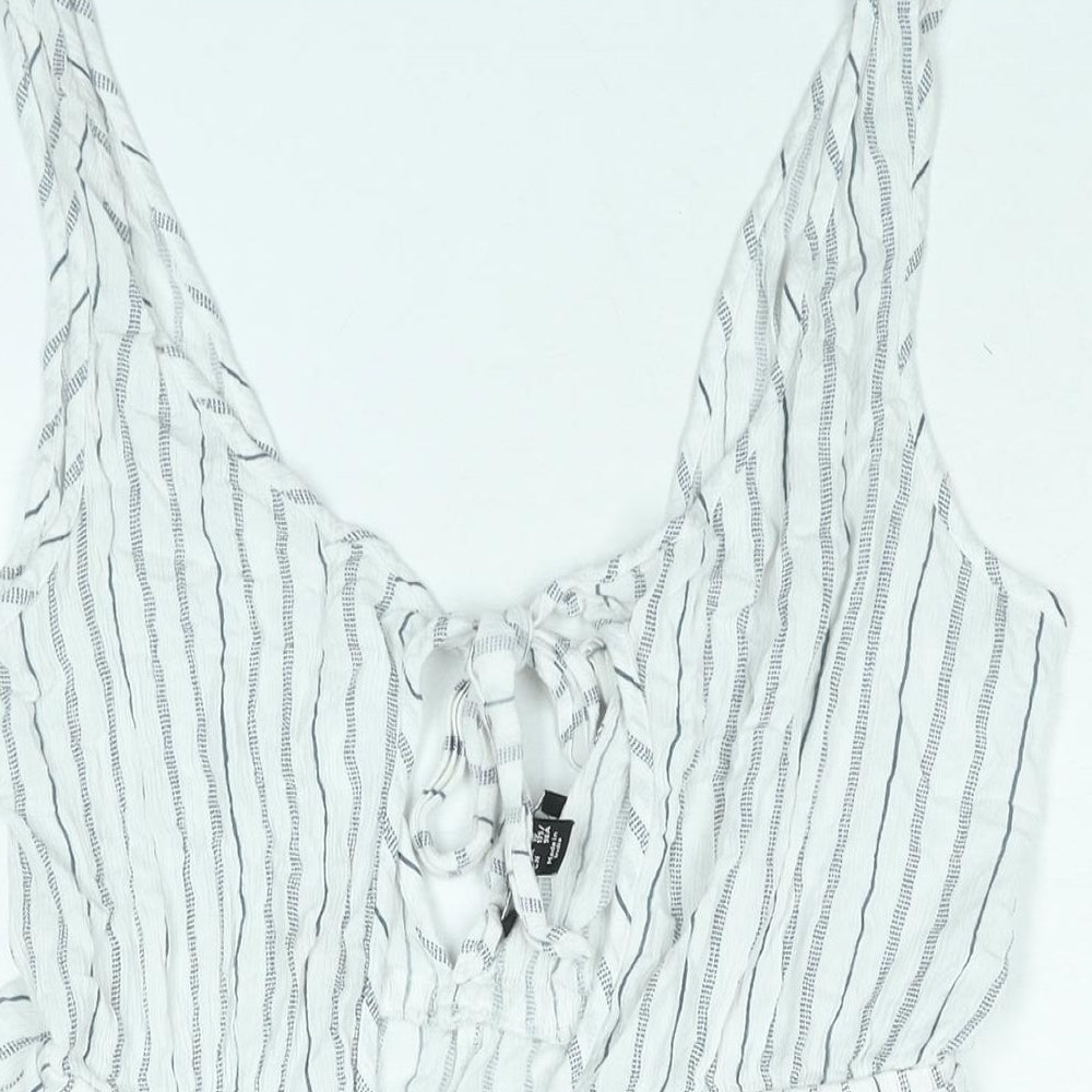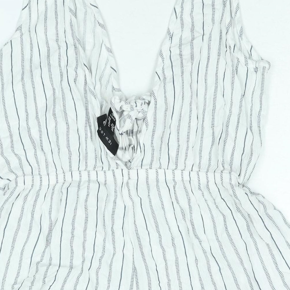 New Look Womens White Striped Viscose Playsuit One-Piece Size 14 Tie