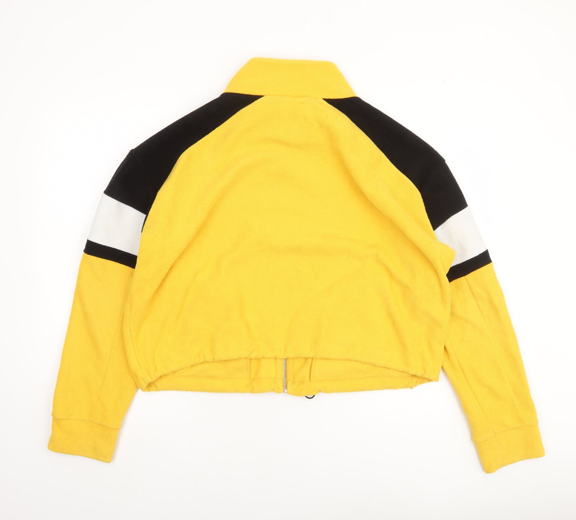 New Look Women's Yellow Fleece Bomber Jacket UK 16 Zip Up Casual
