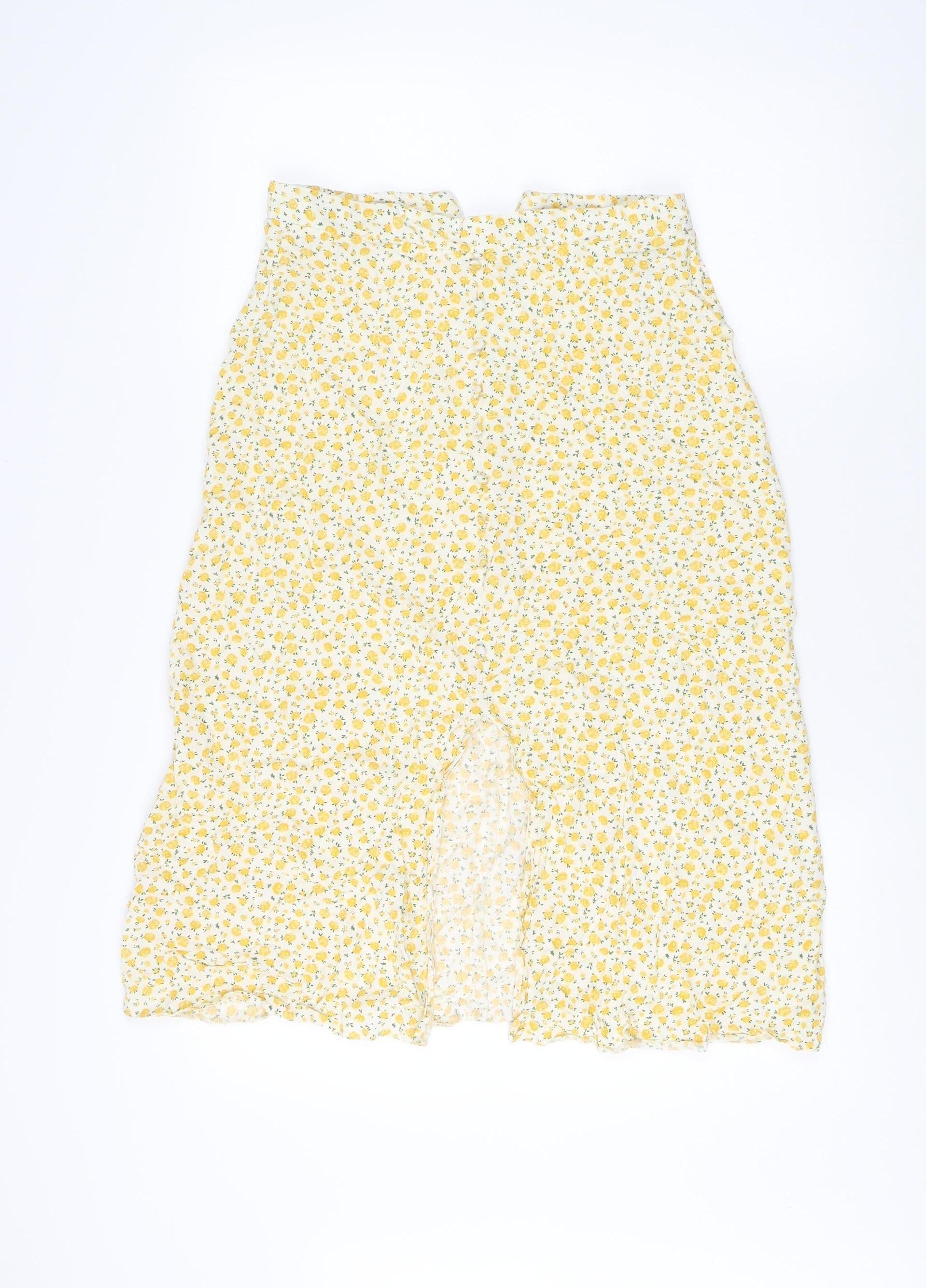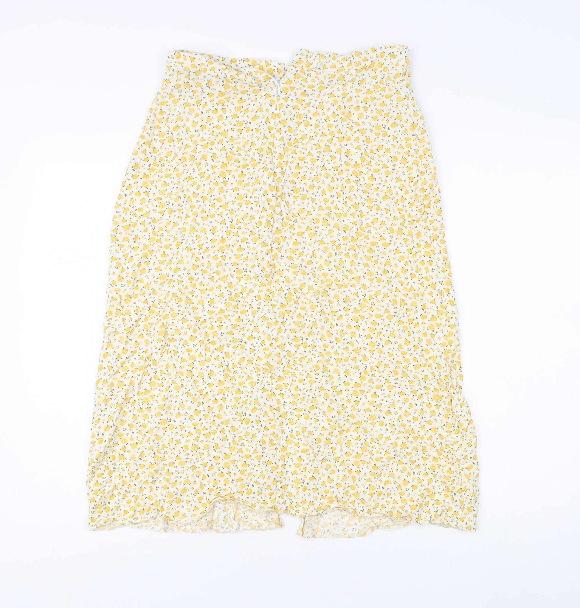 New Look Women's Yellow Floral Midi A-Line Skirt