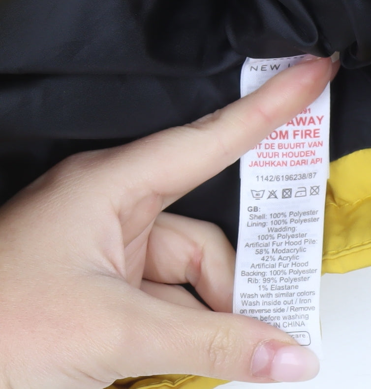 New Look Womens Yellow Puffer Jacket Size 10 Hooded Winter Coat