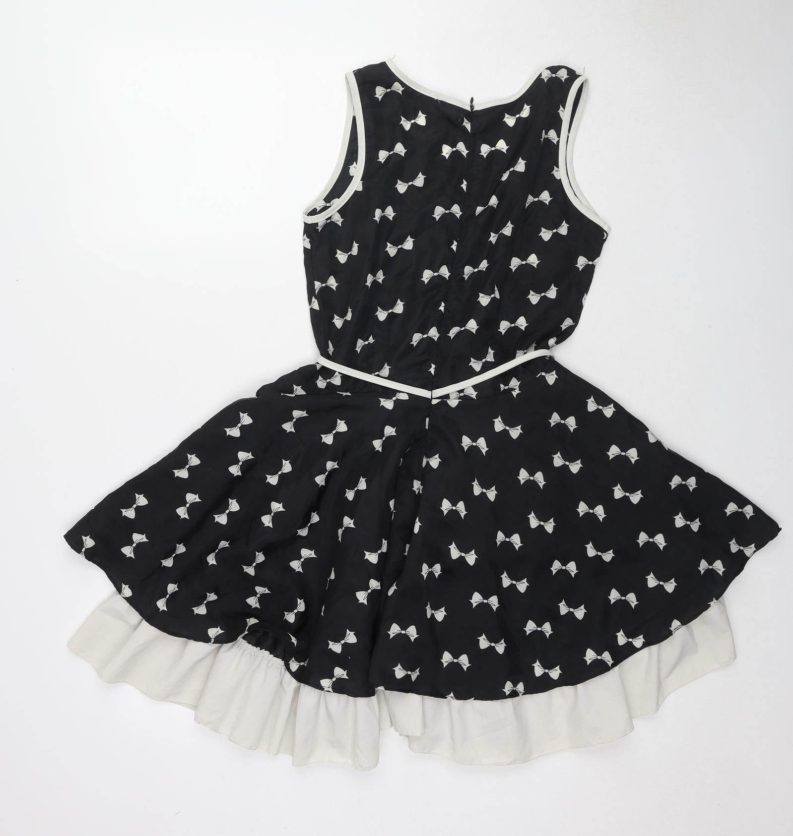 New York Laundry Womens Black Geometric Polyester Fit & Flare Size S Round Neck Zip - Bow pattern
