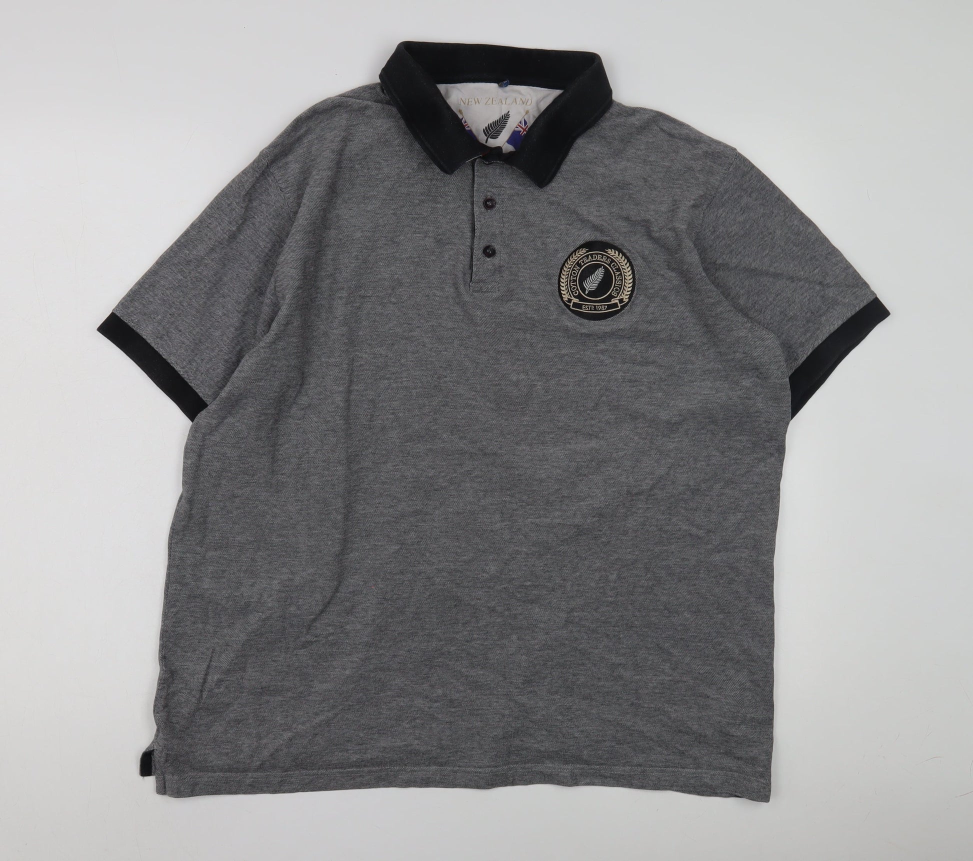 New Zealand Men's Grey XL Polo Shirt with Logo, Short Sleeve