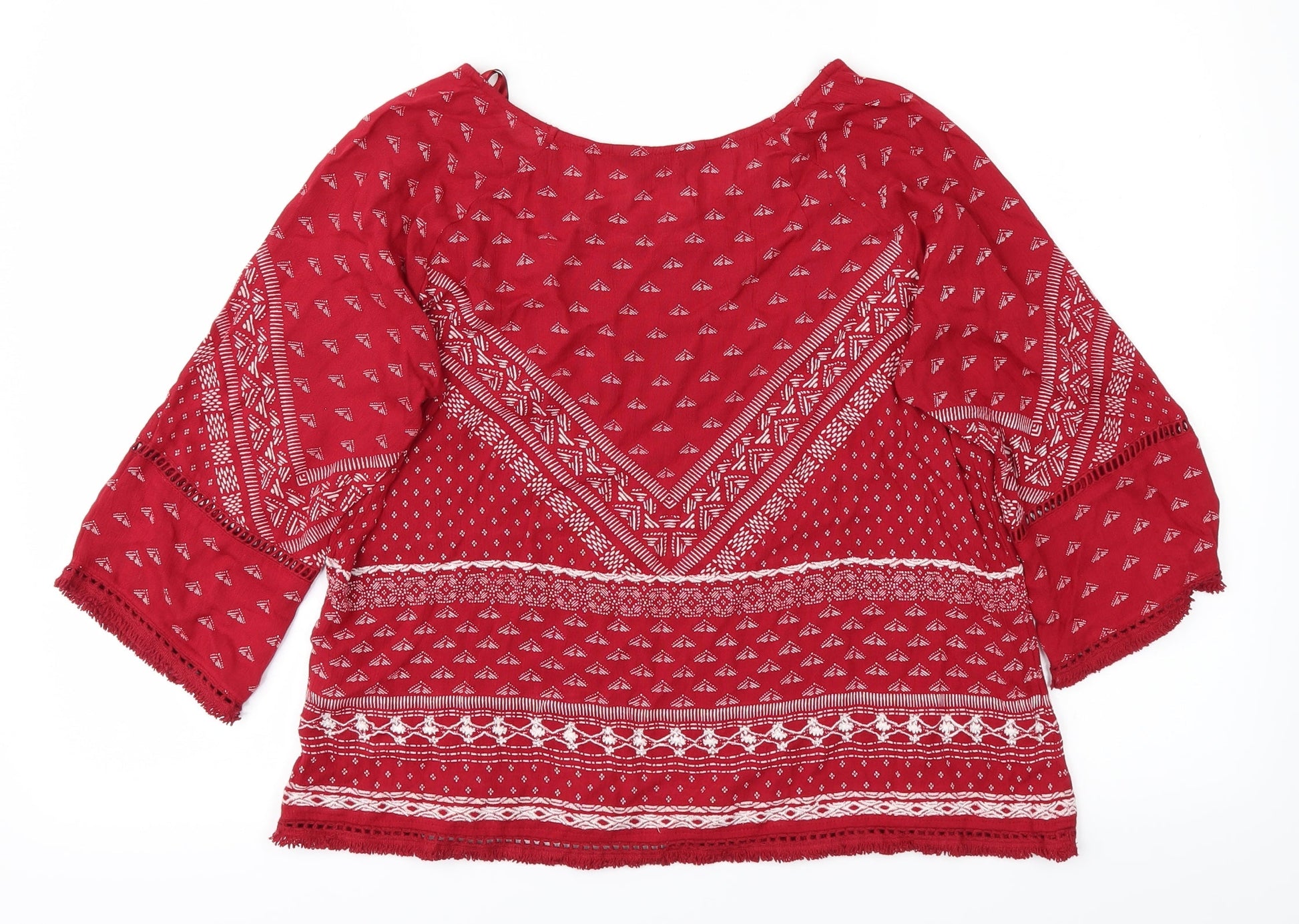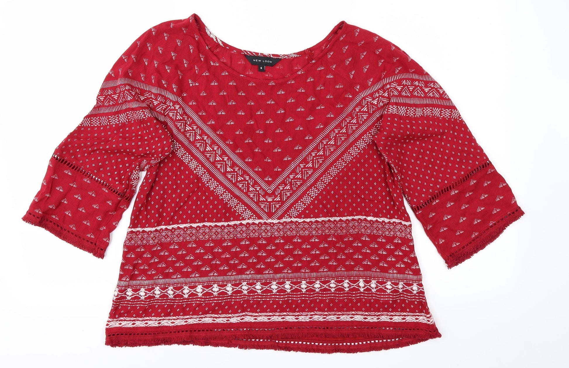 NewLook Womens Red Animal Print Basic Blouse Size 6