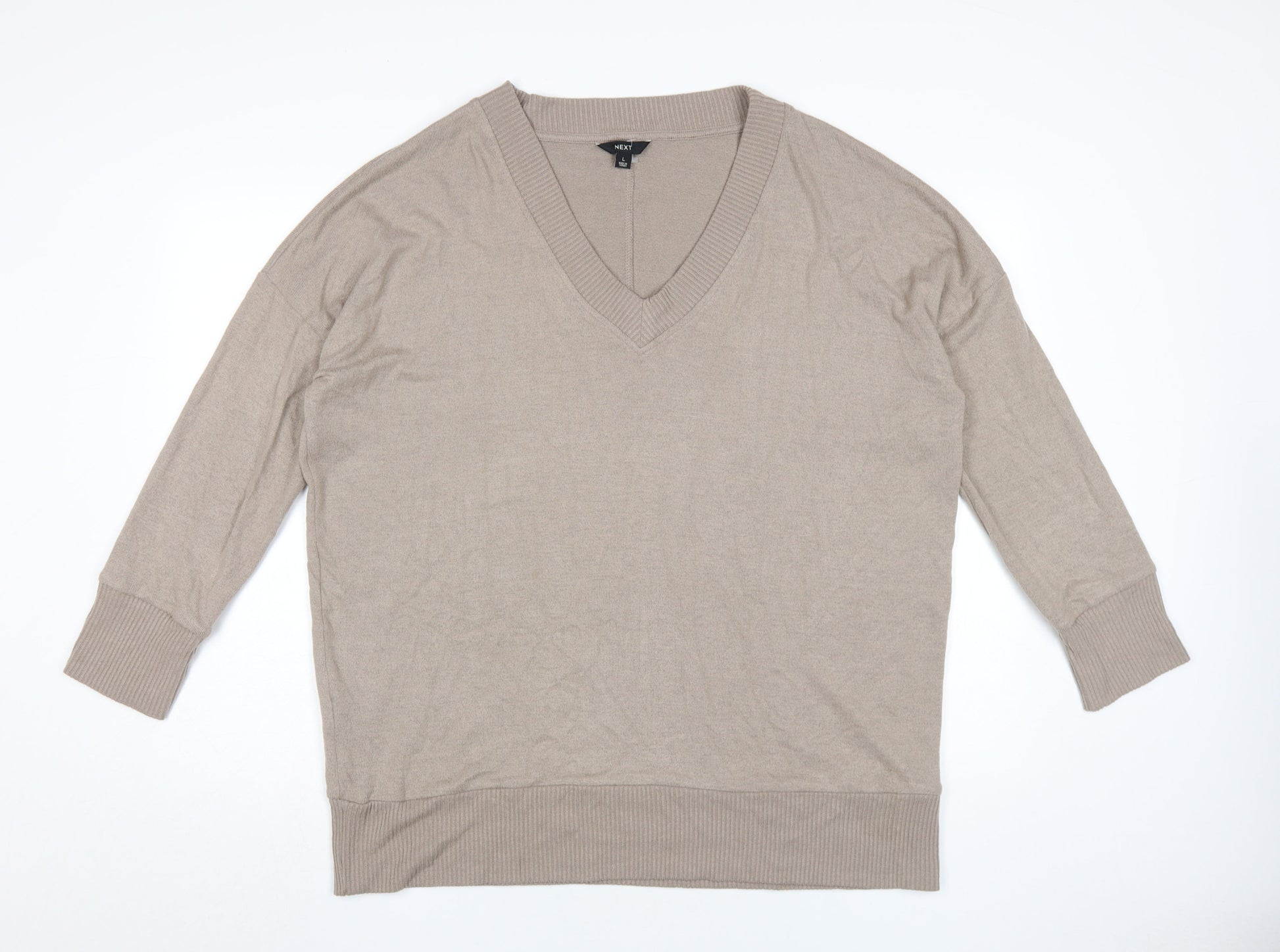Next Beige V-Neck Pullover Jumper L Unisex Adults