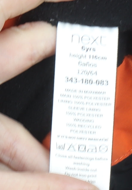 Next Boys Orange & Black Puffer Jacket Hooded 6 Years Full Zip Winter Coat