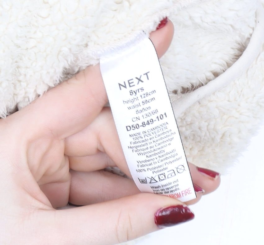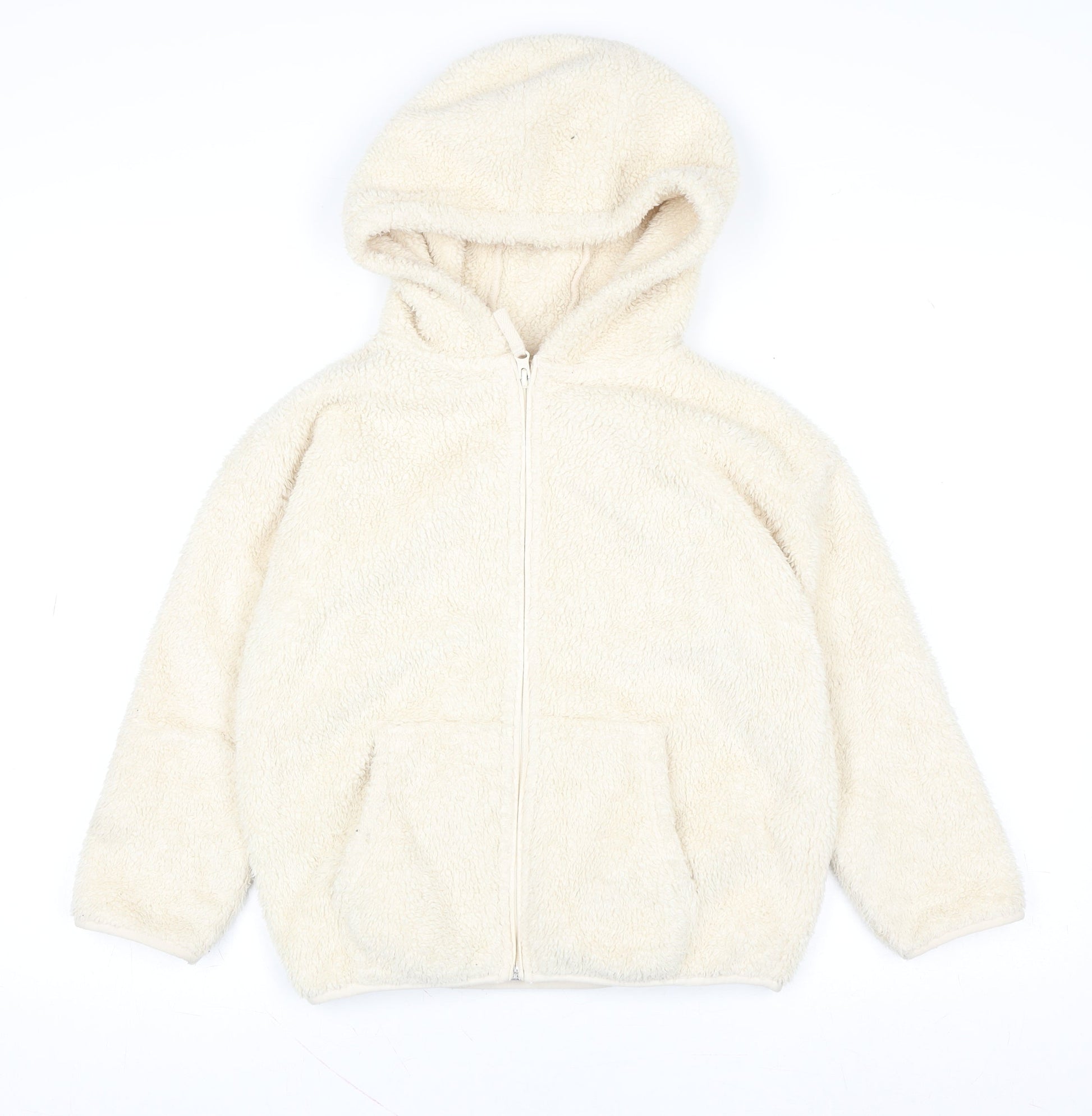 Next Girls Ivory Fleece Hooded Zip Jacket 8 Years Polyester Autumn Winter