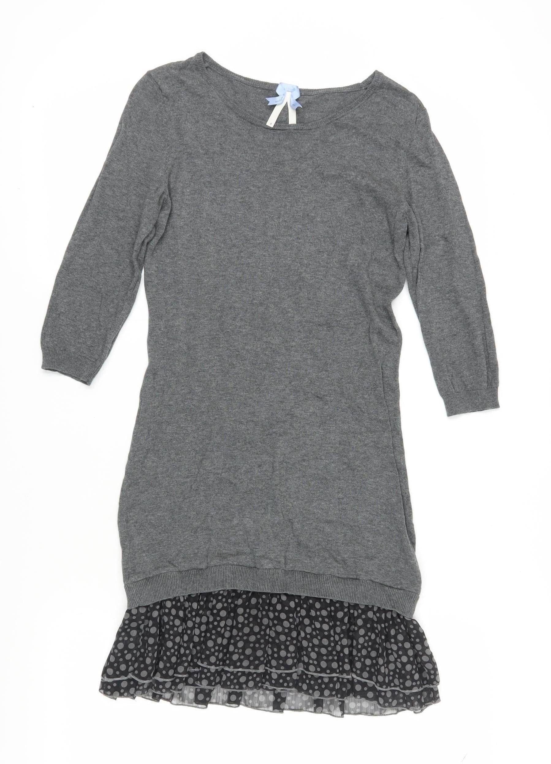 Next Grey Shift Dress Women Size 8 Polka Dot Hem