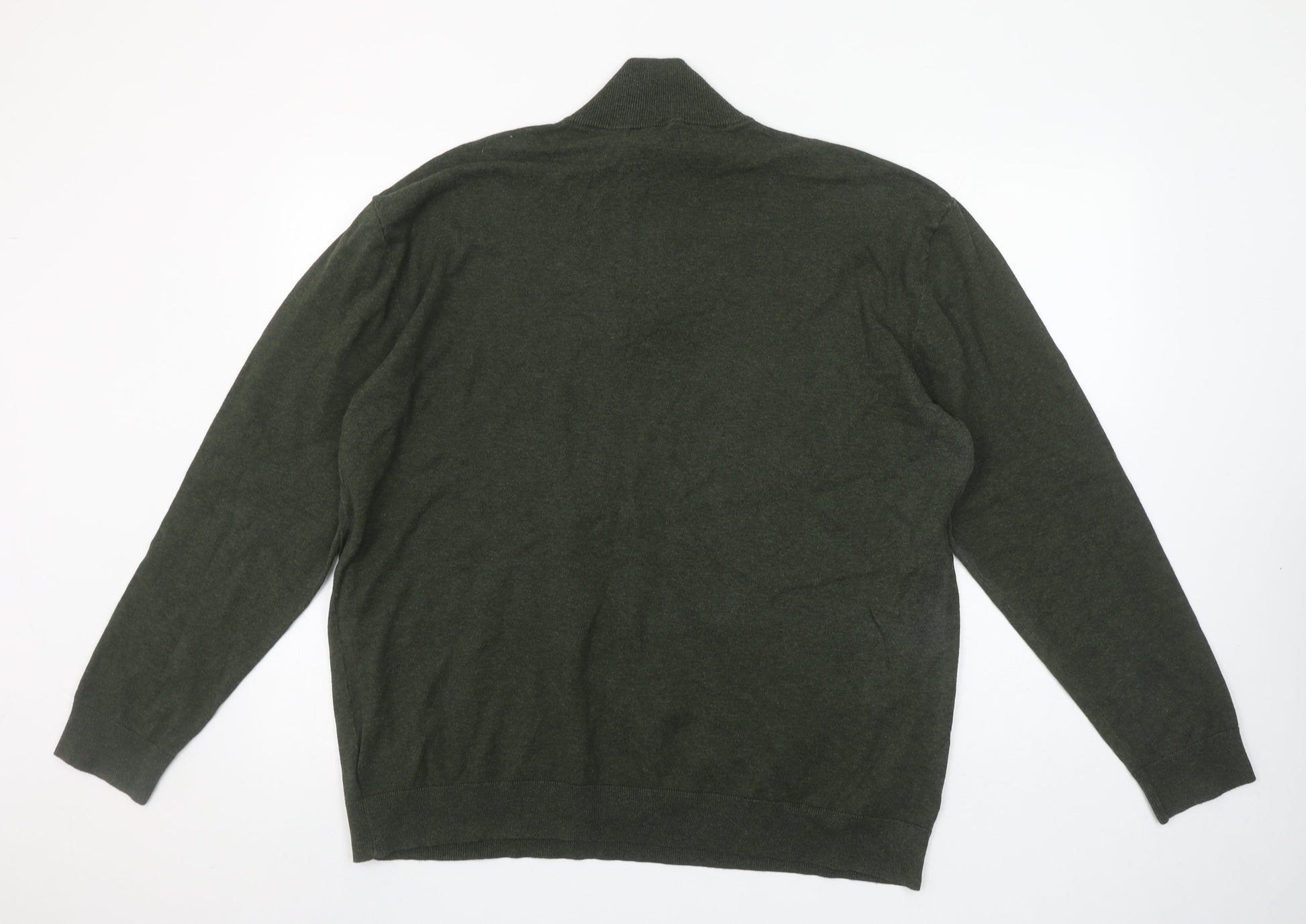 Next Men Green 2XL High Neck Cotton Knit 1/2 Zip Jumper