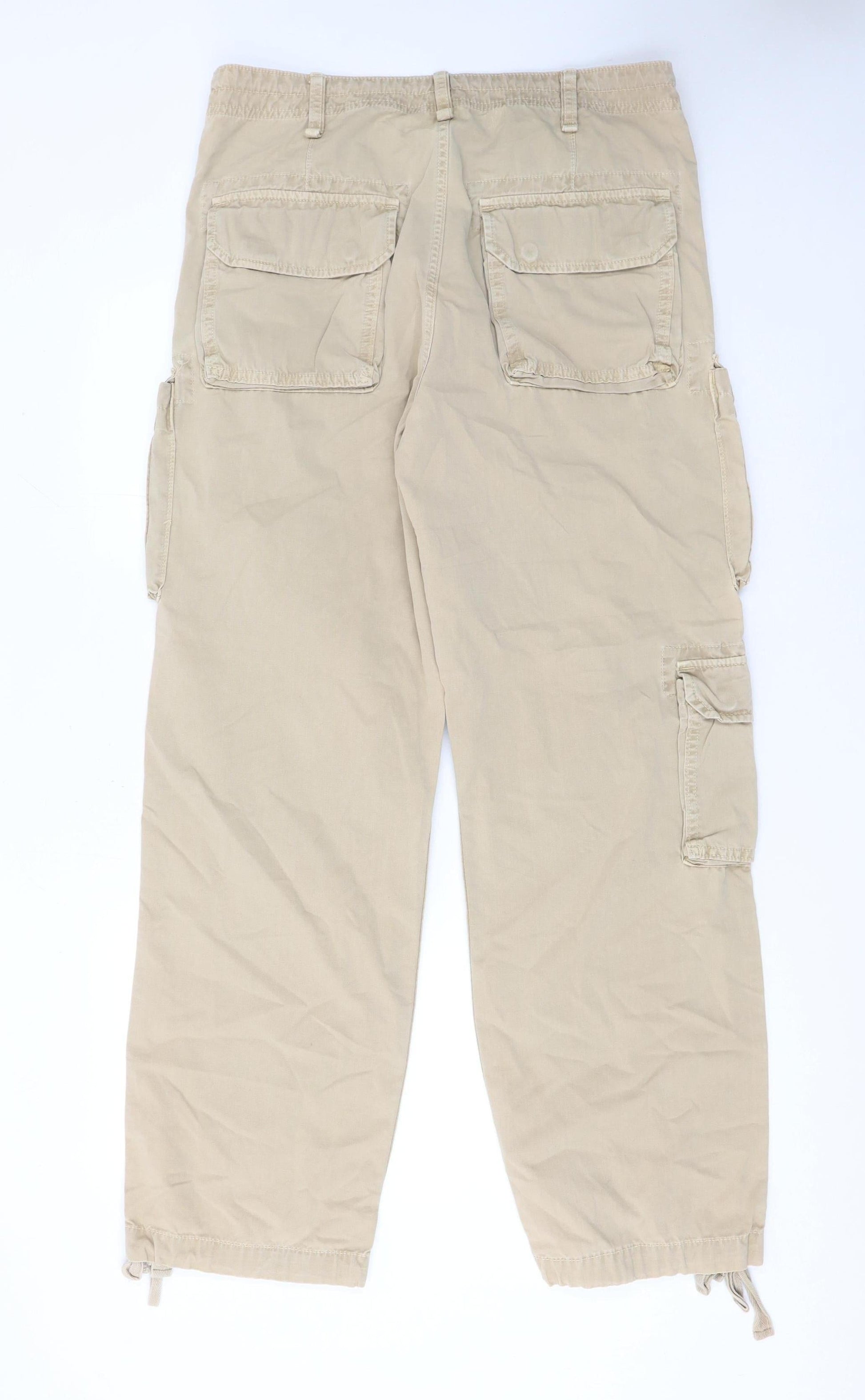 Next Men’s Beige Cargo Trousers 34R Cotton Adjustable Waist Casual