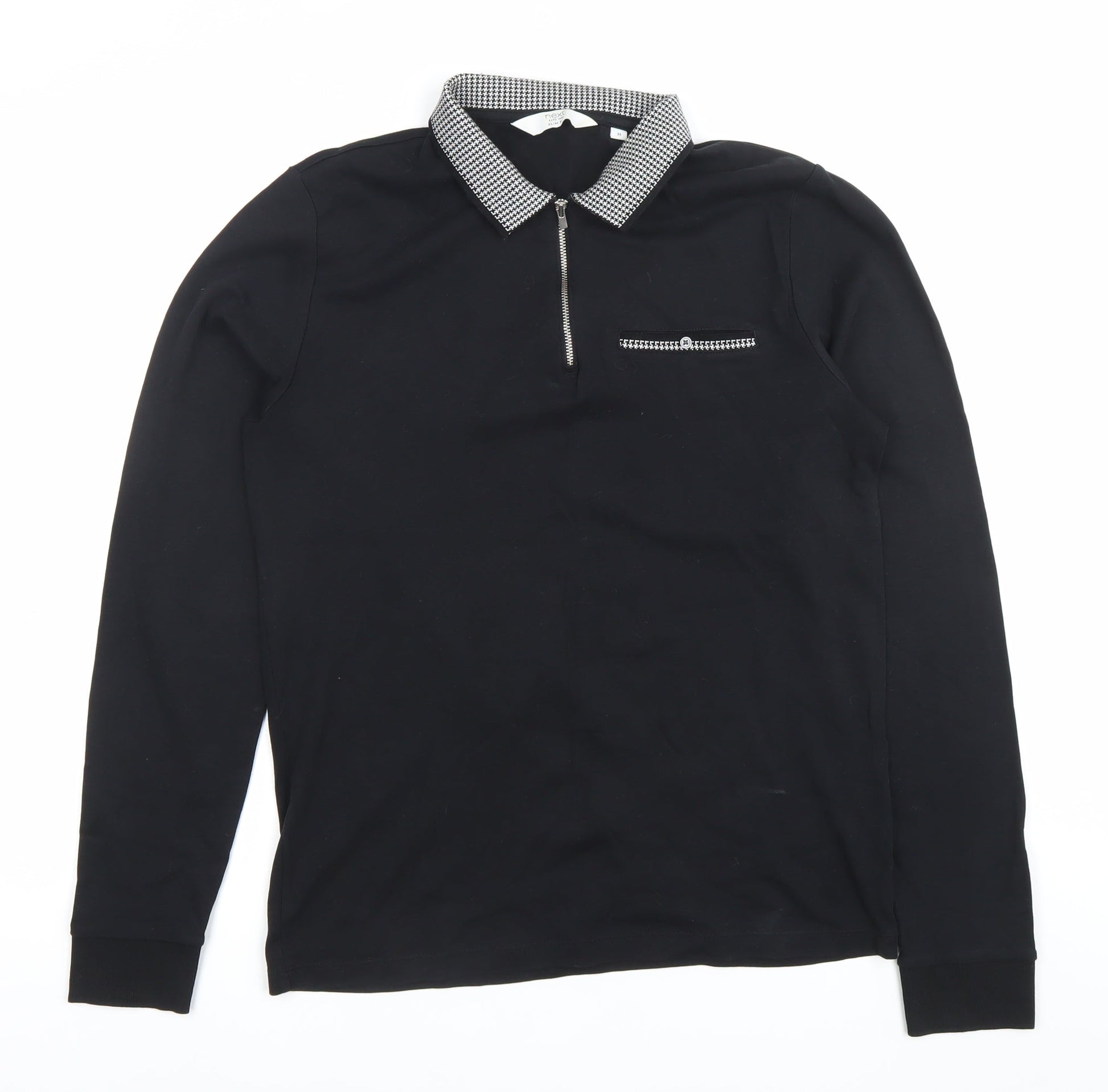 Next Men’s Black Long Sleeve Cotton Polo Shirt Size M Zip Collar