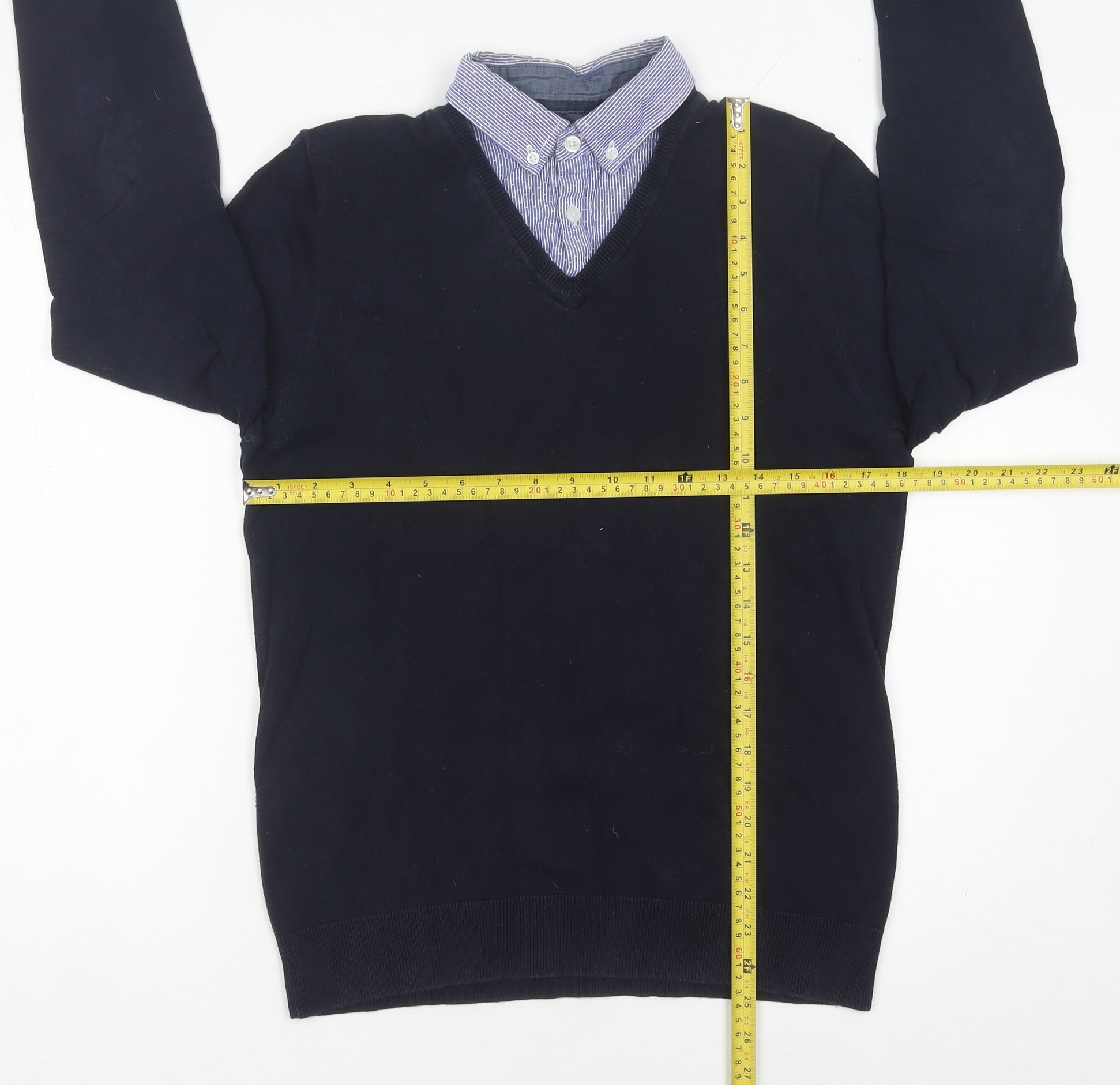 Next Men’s Blue Cotton Blend V-Neck Jumper Small