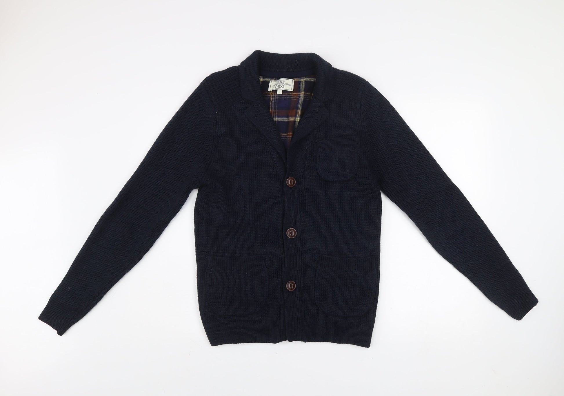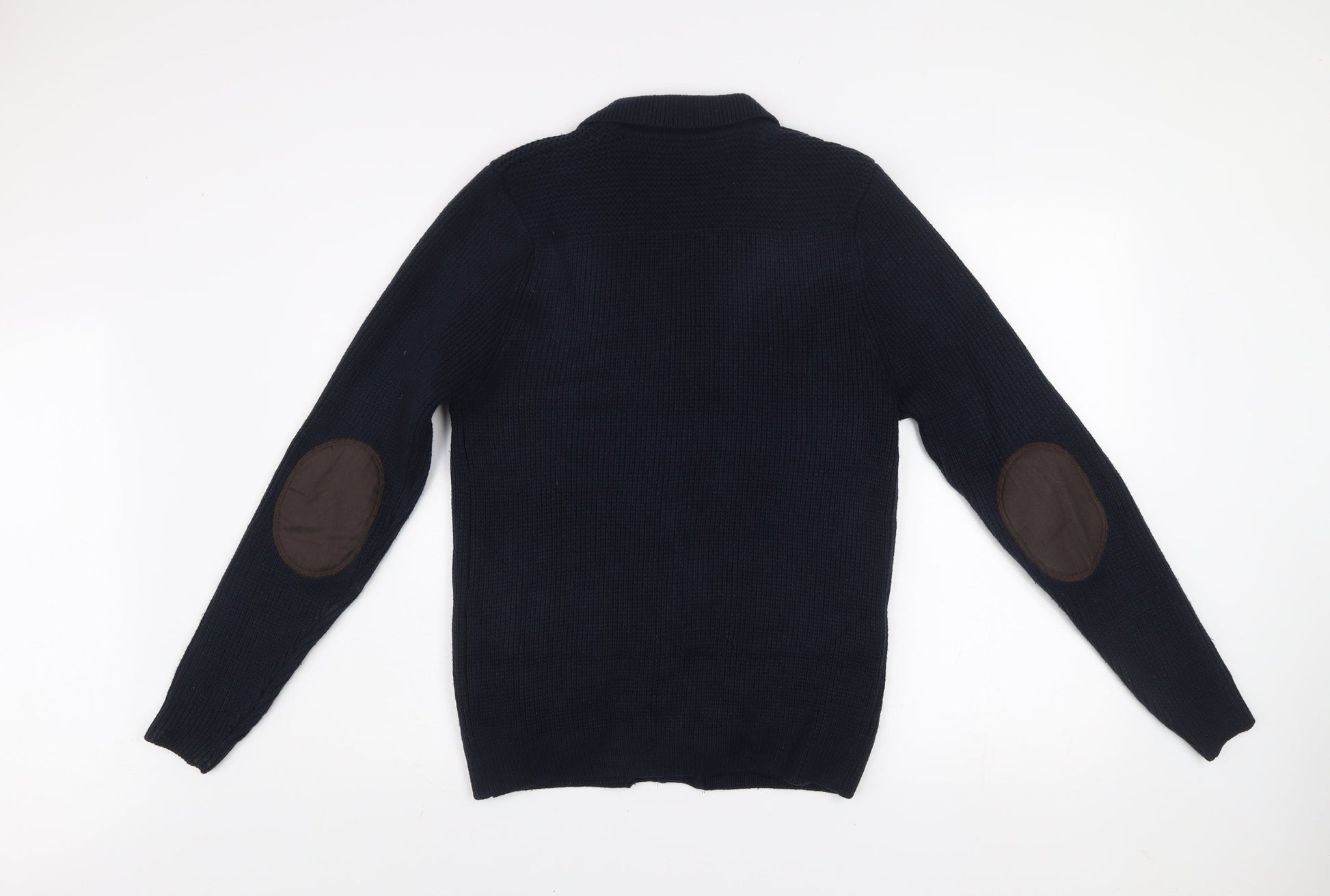 Next Men’s Blue Cotton Chunky Knit Collared Cardigan Size S