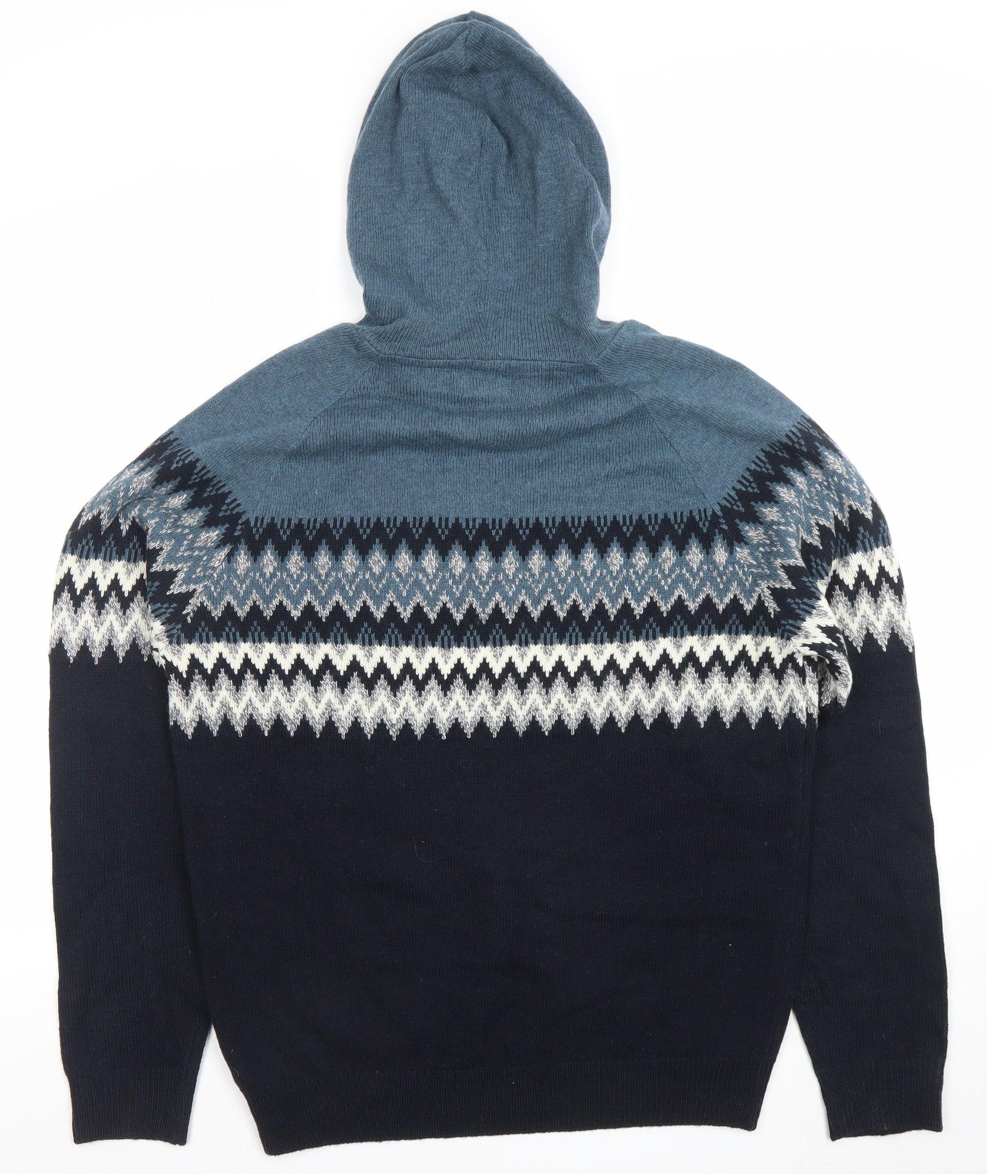 Next Men’s Blue Fair Isle Hooded Knit Jumper Size L