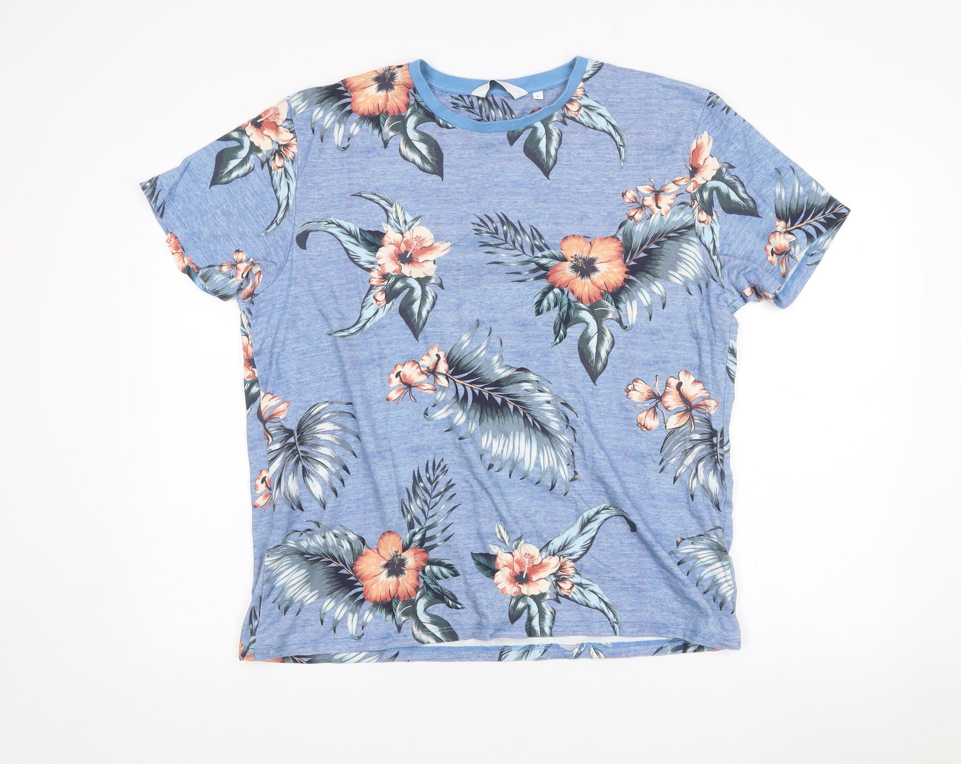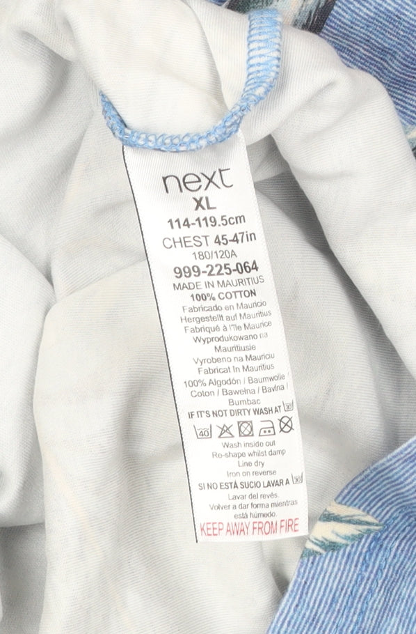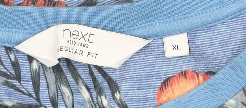 Next Men’s Blue Floral Hawaiian T-Shirt XL Regular Fit Cotton