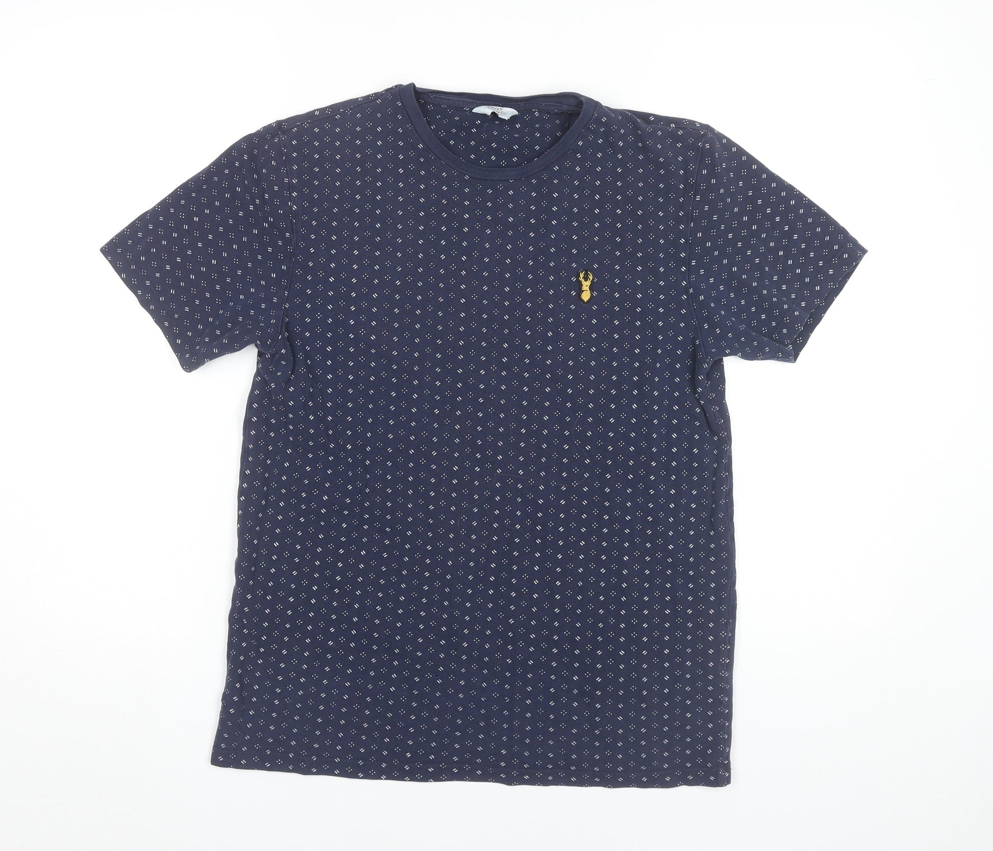 Next Men’s Blue Geometric Cotton Crew Neck T-Shirt Size S