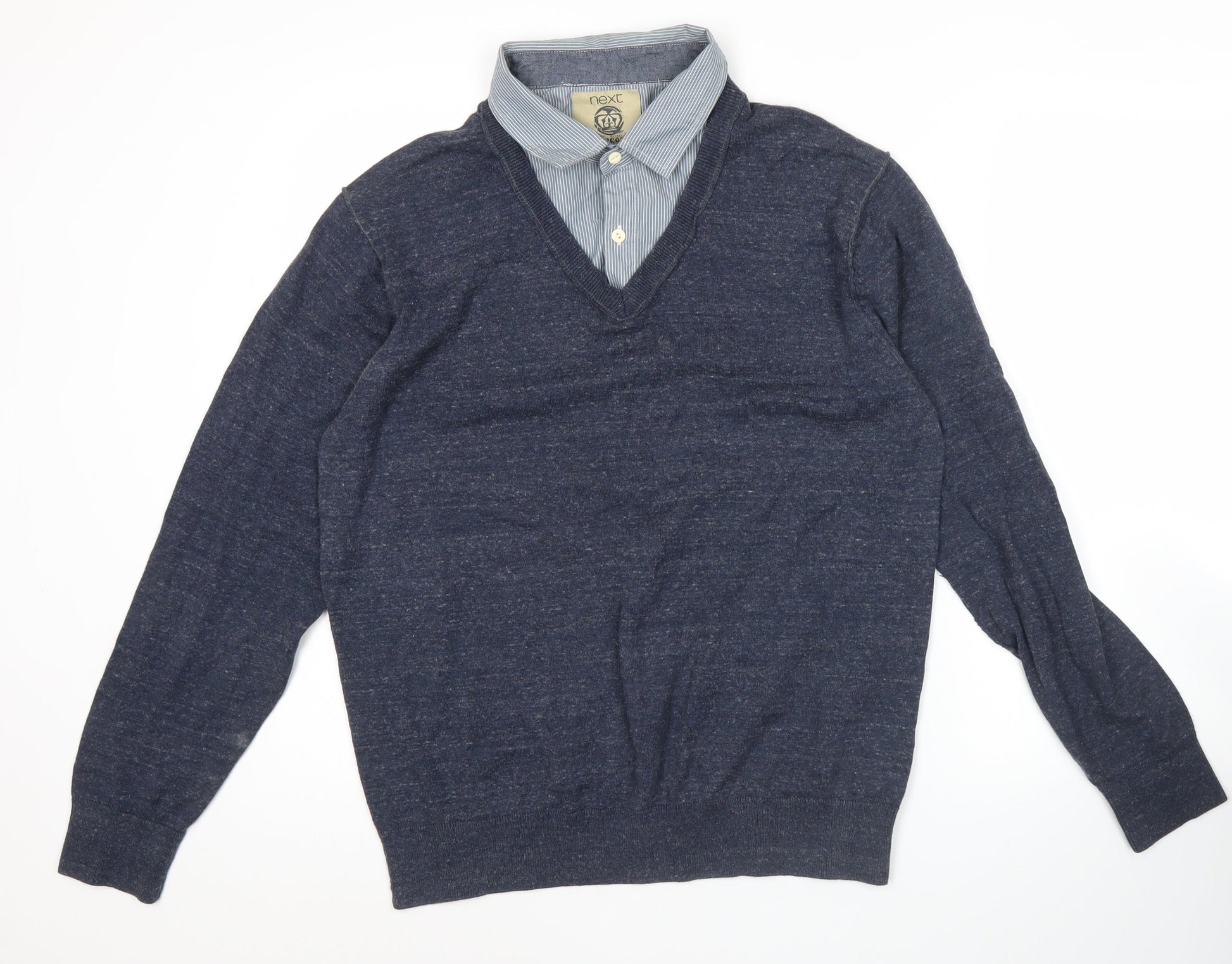 Next Men’s Blue V-Neck Pullover Jumper Knitwear Size L Cotton Blend