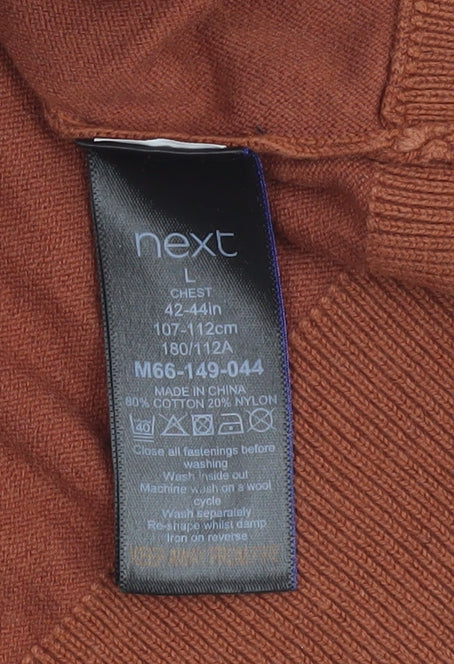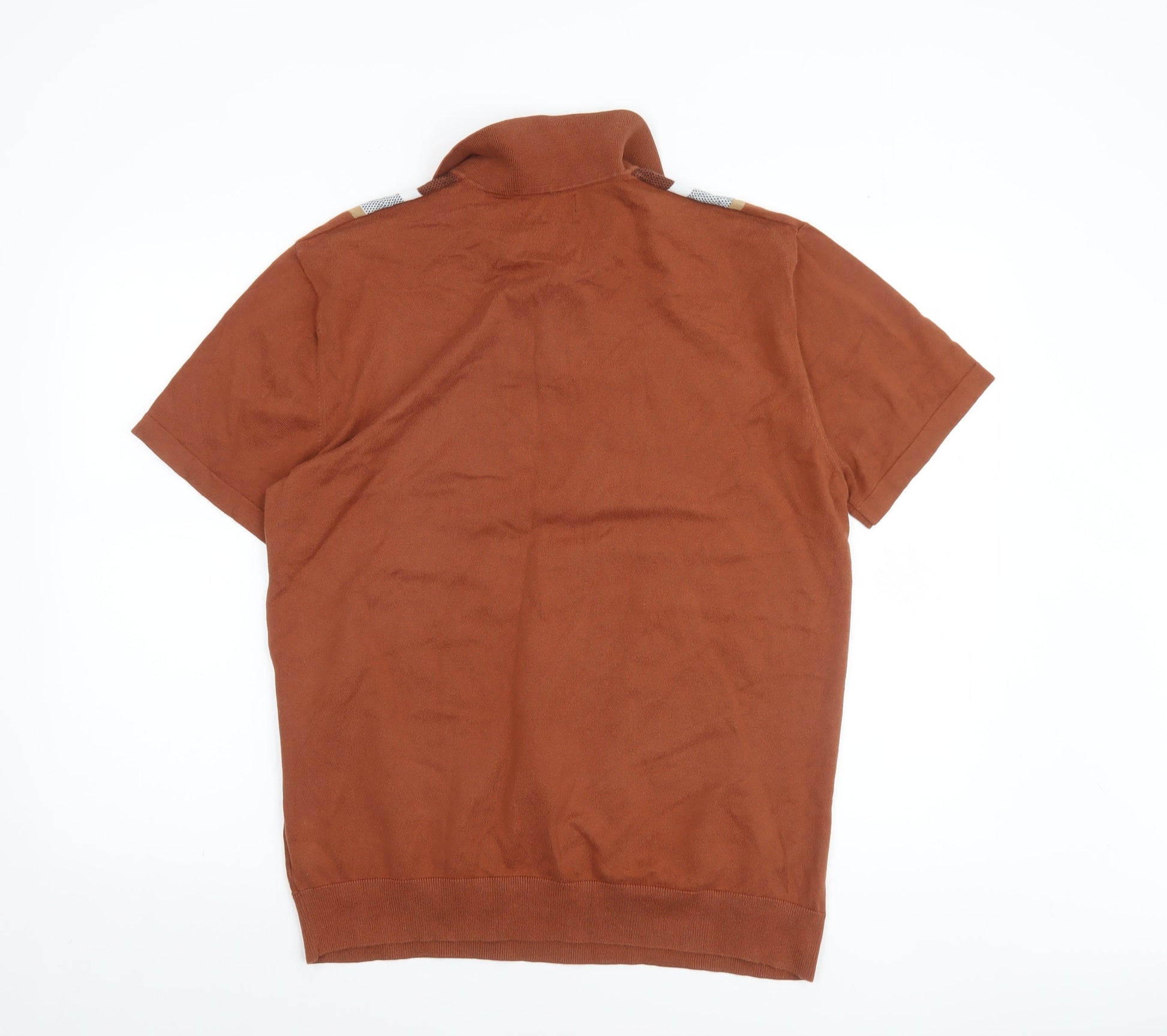 Next Men’s Brown Striped Cotton Knit Short Sleeve Polo Jumper L