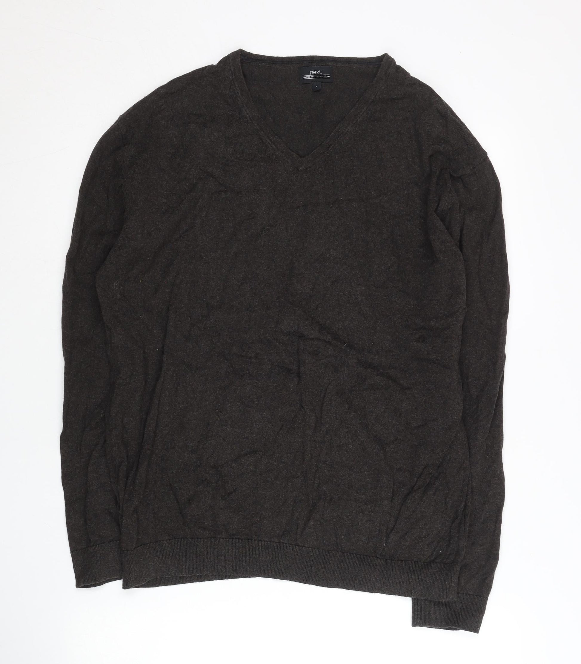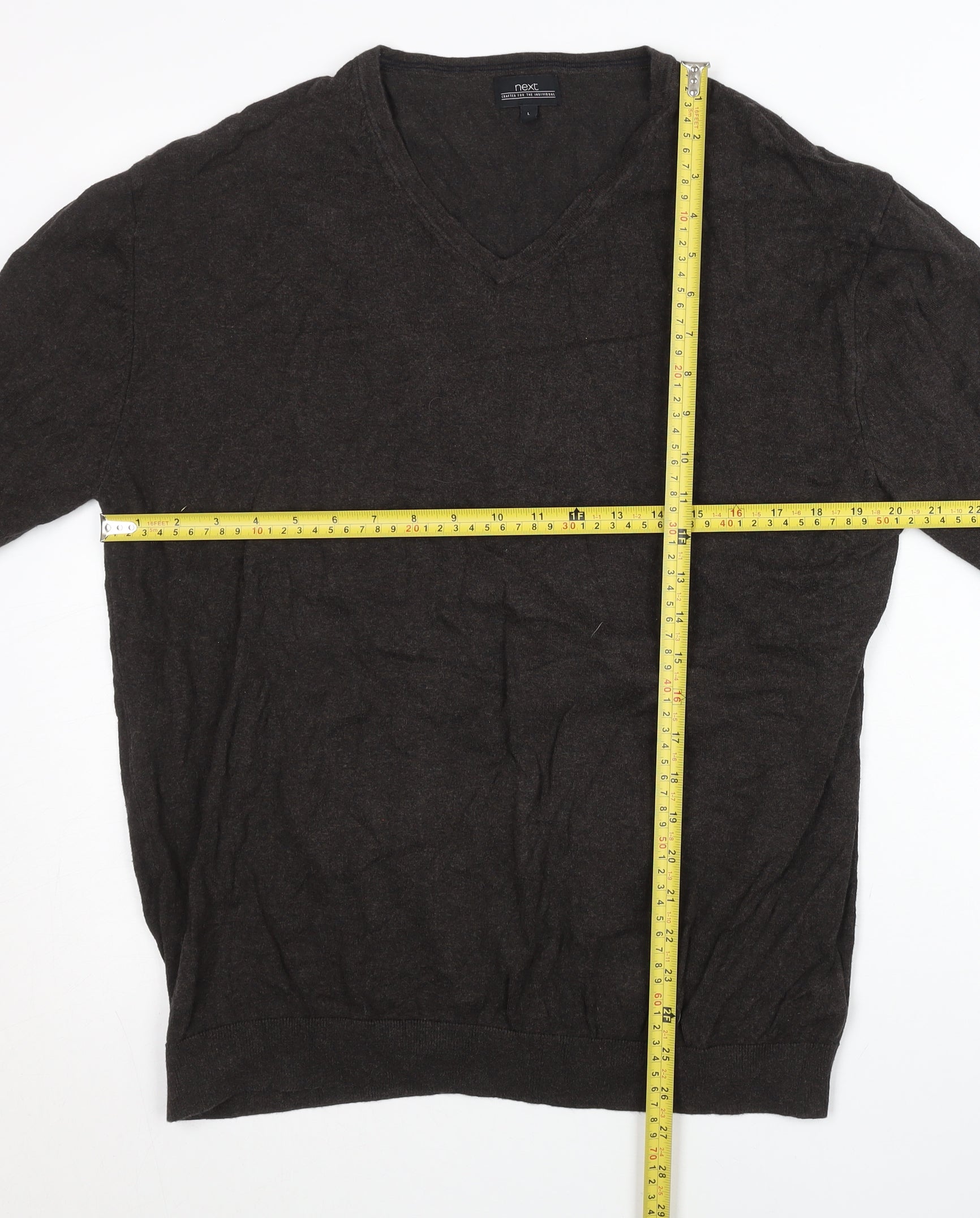 Next Men’s Brown V-Neck Cotton Nylon Jumper Size L Regular Fit