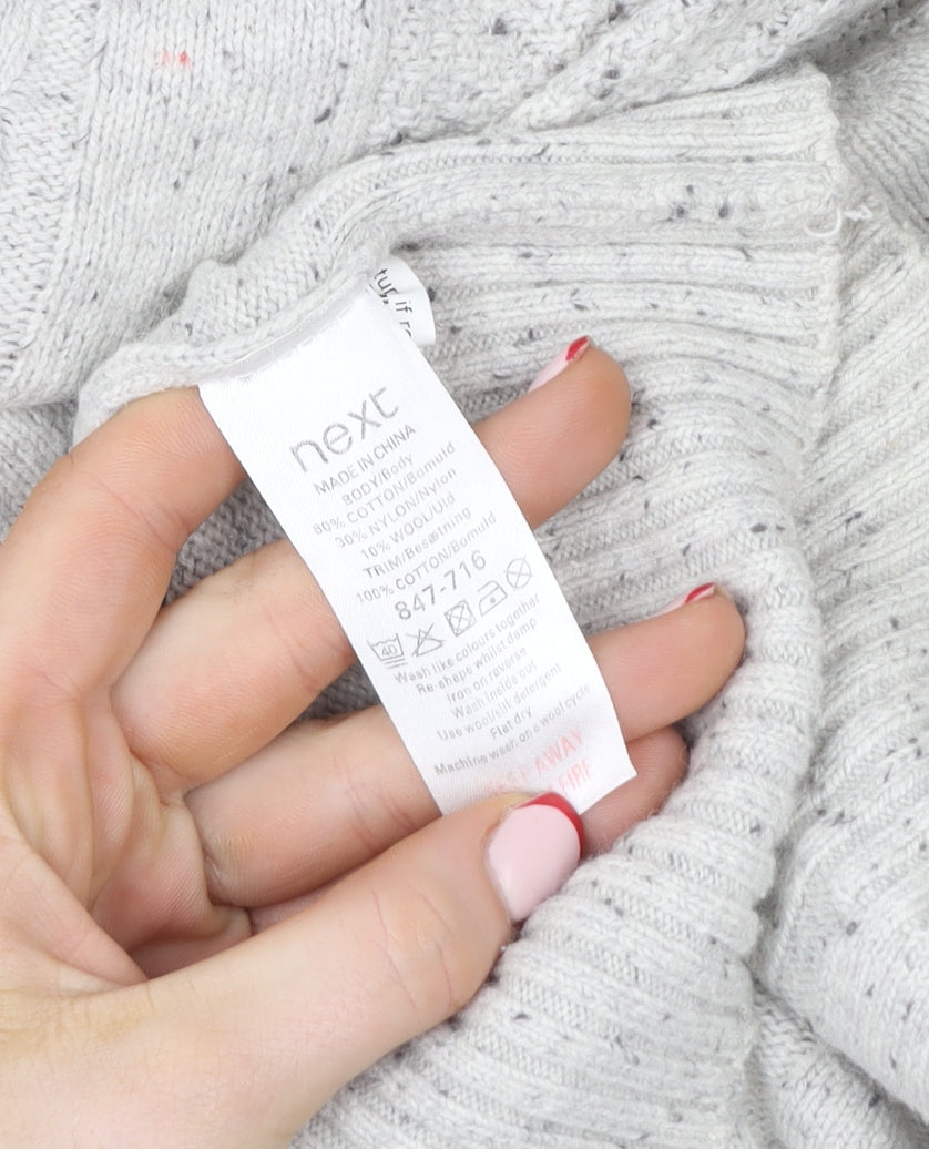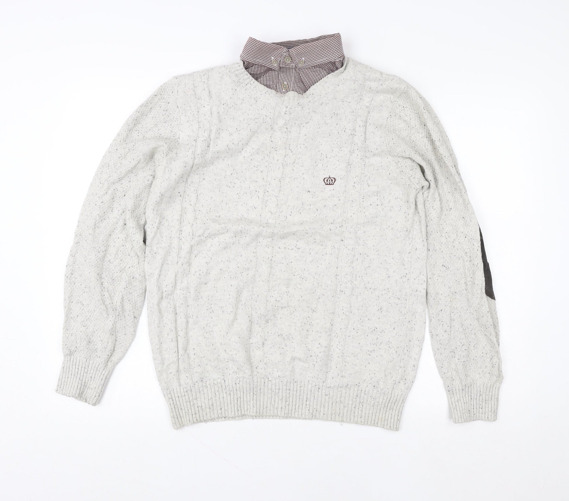 Next Men’s Grey Cable Knit Pullover Jumper M Cotton Wool Elbow Patches